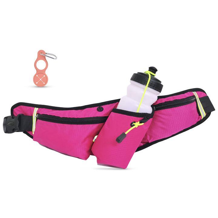ランニングホ゜ーチ スリム ウエストポーチ 軽量 防水 薄型 大容量 揺れない 光反射材 スマホ 対応 メンズ レディース カラビナ付(ローズレッド) |