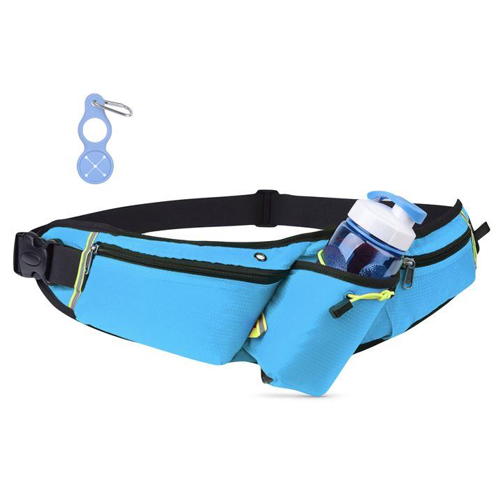 ランニングホ゜ーチ スリム ウエストポーチ 軽量 防水 薄型 大容量 揺れない 光反射材 スマホ 対応 メンズ レディース カラビナ付(ライトブルー) |