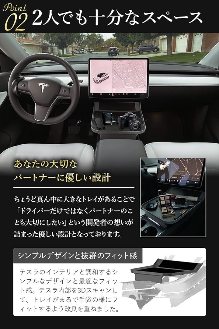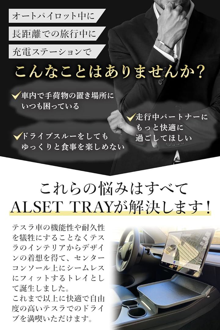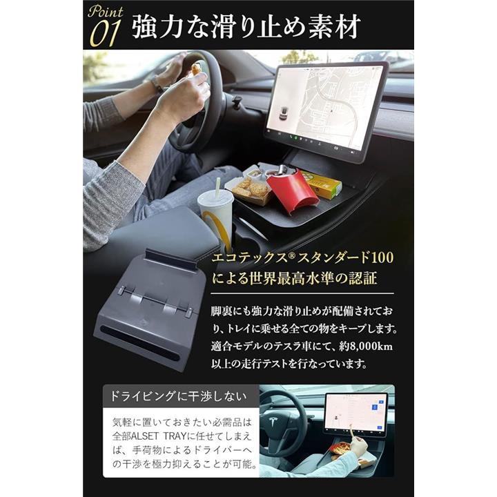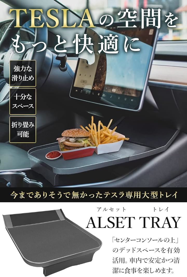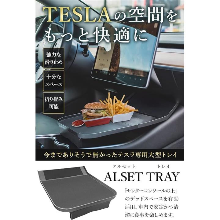 ALSET TRAY アルセットトレイ テスラモデル3・Y 専用 フィット感アップ センタートレイ センターコンソール 食品食卓テーブル グレー