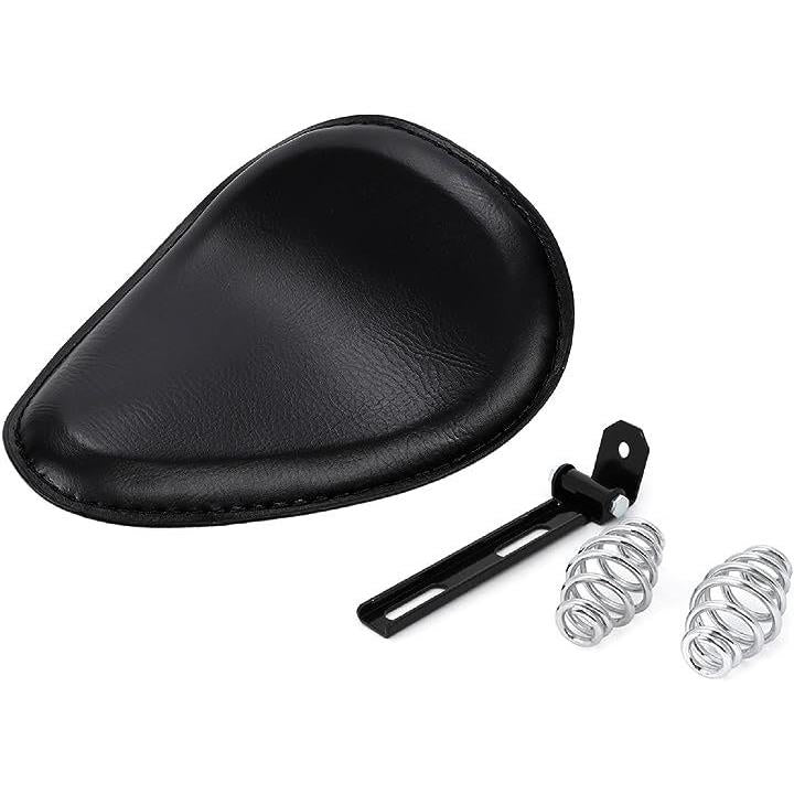 互換品汎用 ハーレー レザー オート バイカスタム ソロスプリングブラケットシート ハードボトム フラットフェンダー ソロシート シングルシート セット ブラック