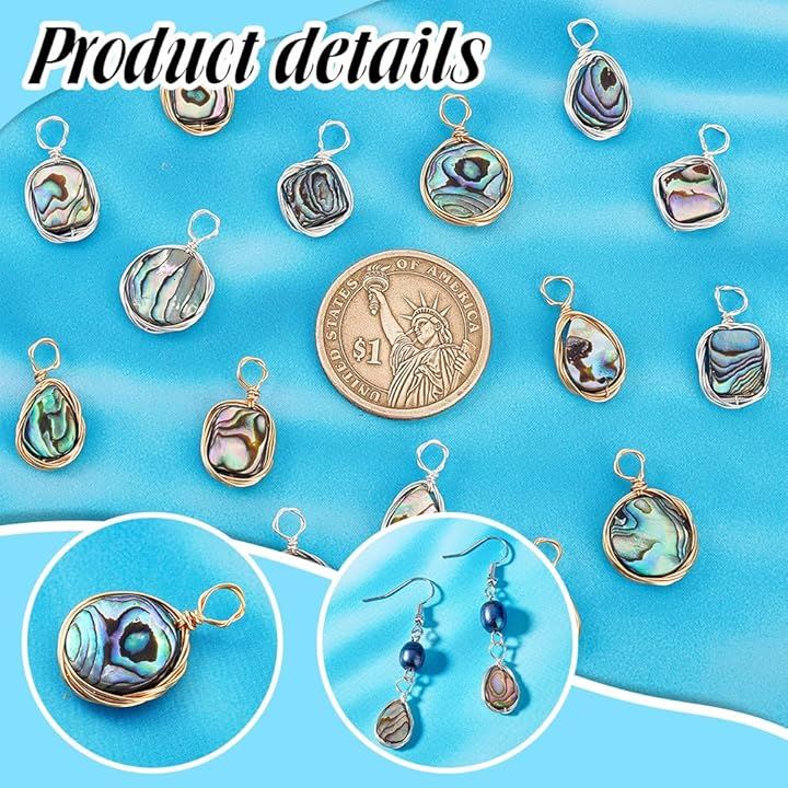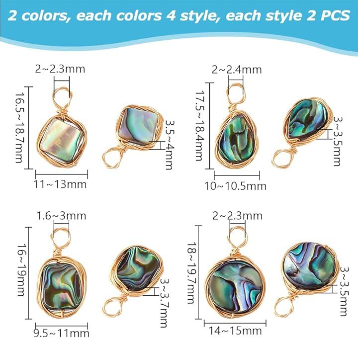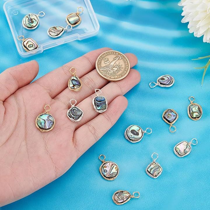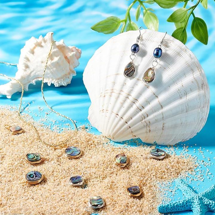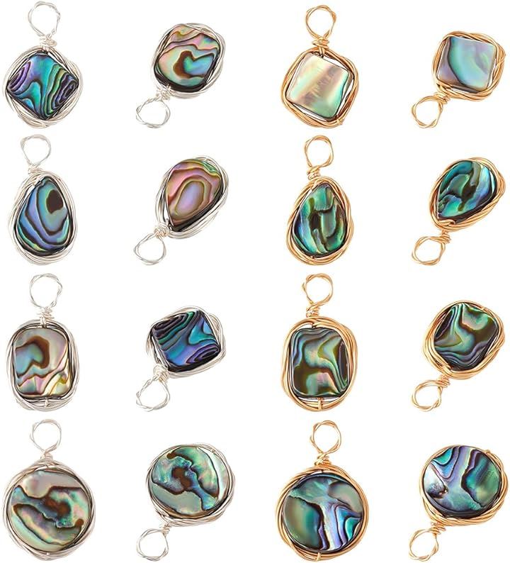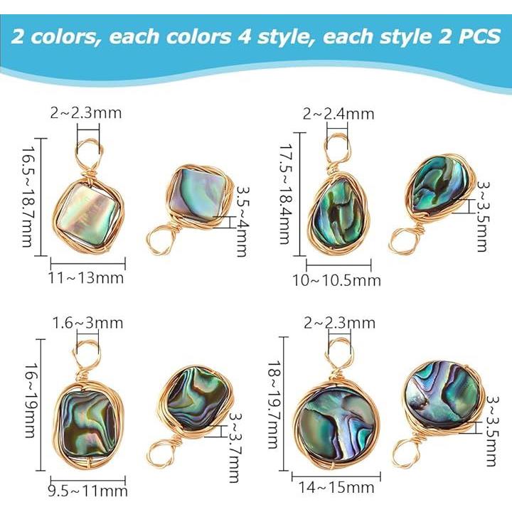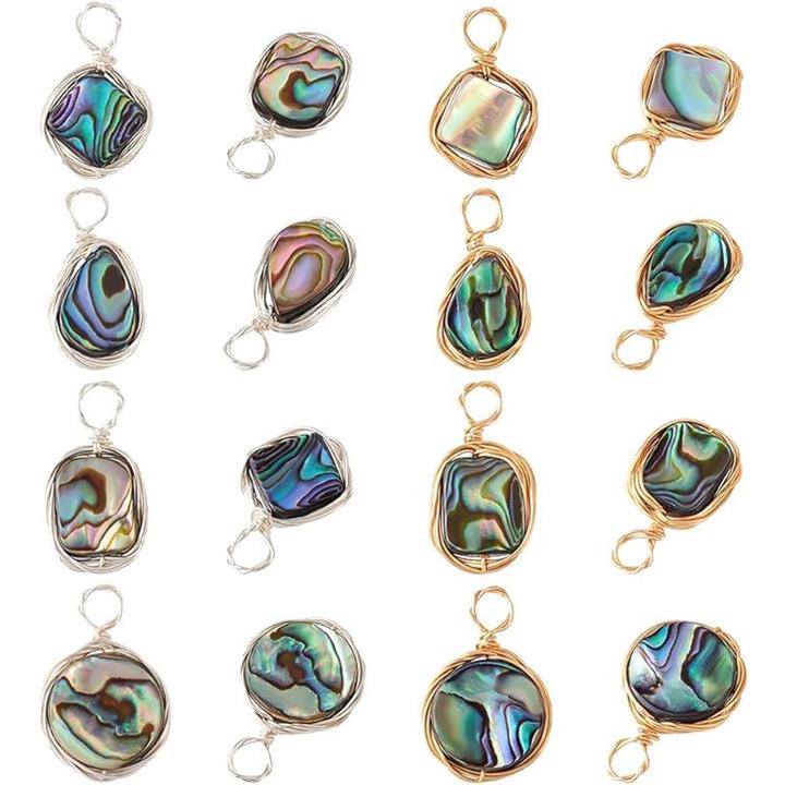 アワビ貝 チャーム 貝殻チャーム 16個セット シェルパーツ 8種 ペンダント ビーチ小物 海洋 天然素材 アクセサリーパーツ イヤリング ネックレス ブレスレット