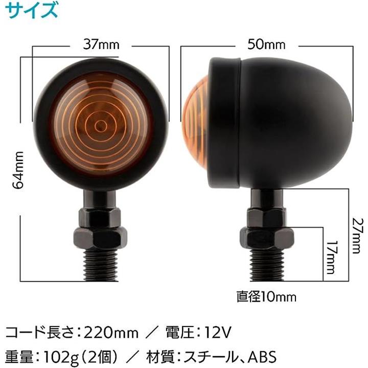 互換品バイク ウインカー 砲弾型 汎用 12V カスタム ハーレー スティード モンキー オレンジレンズ