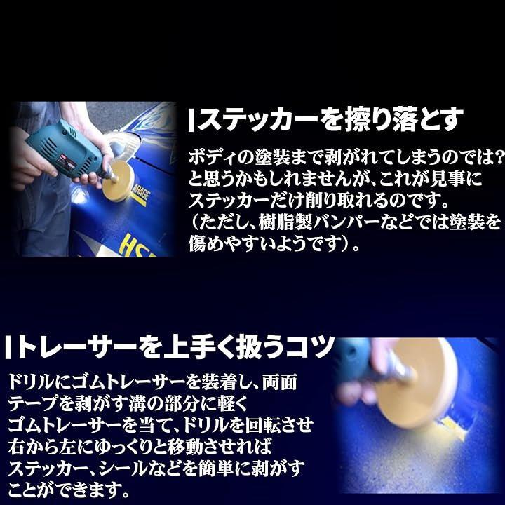 ゴム トレーサー 工具 エアードリル 電動 車検 ボディ シール はがし 消し シャンク 剥離 両面テープ 軽く 回転