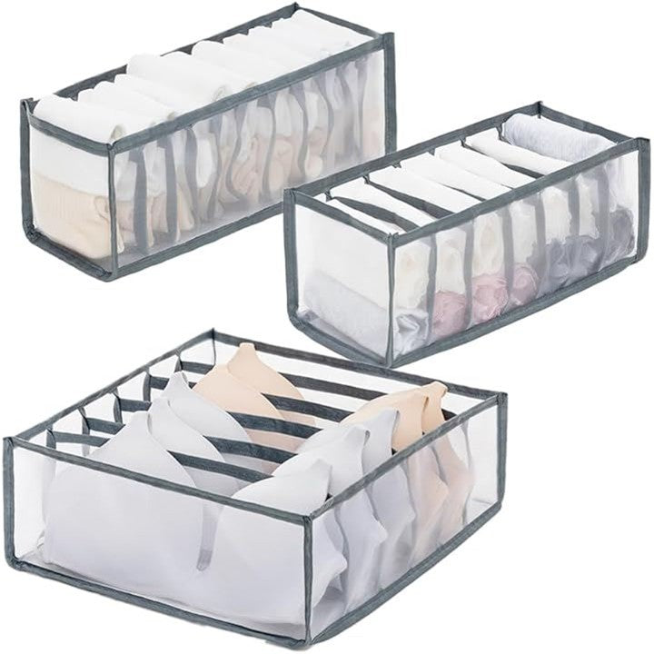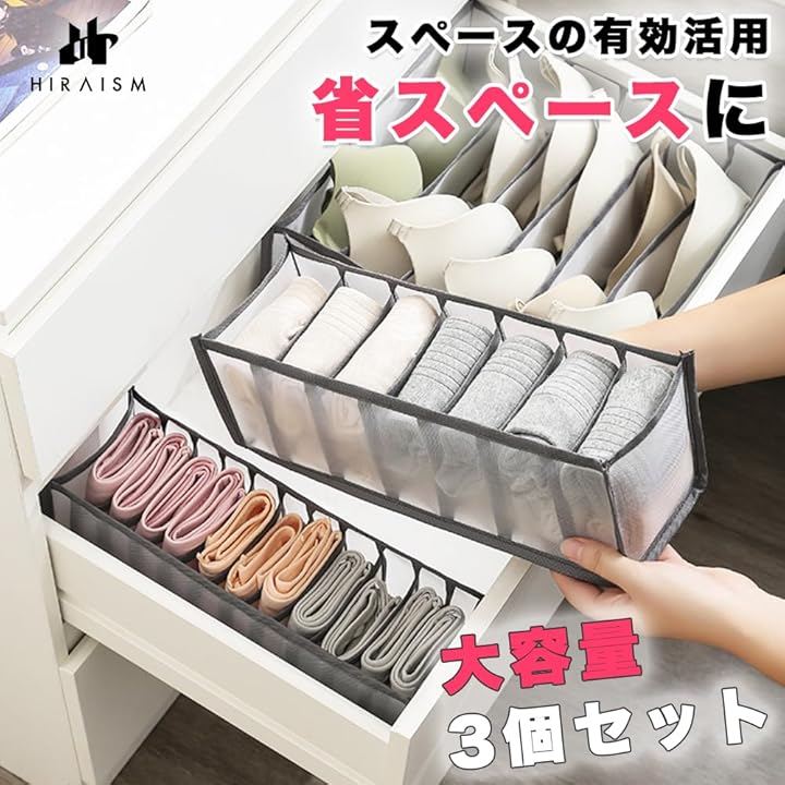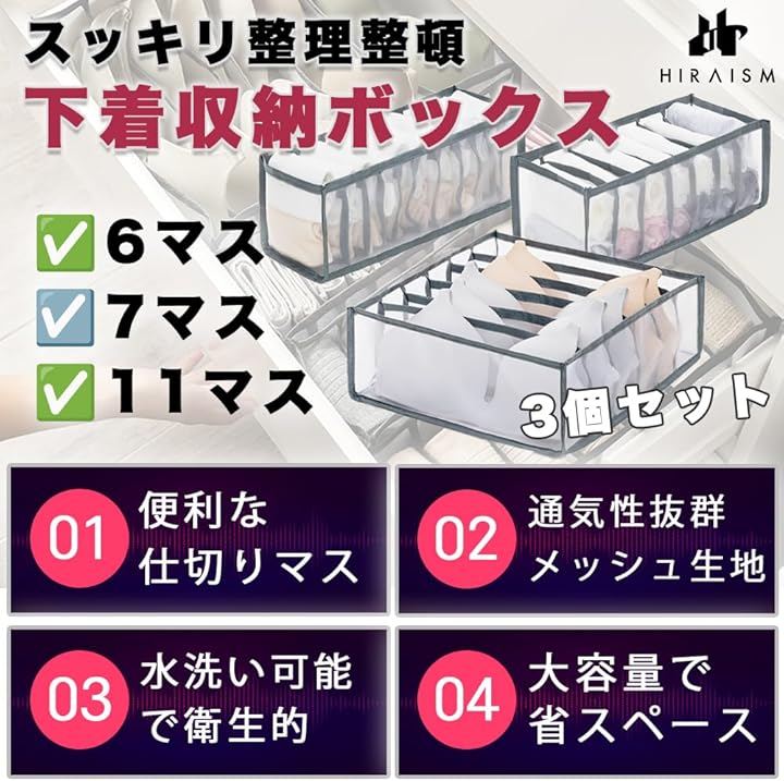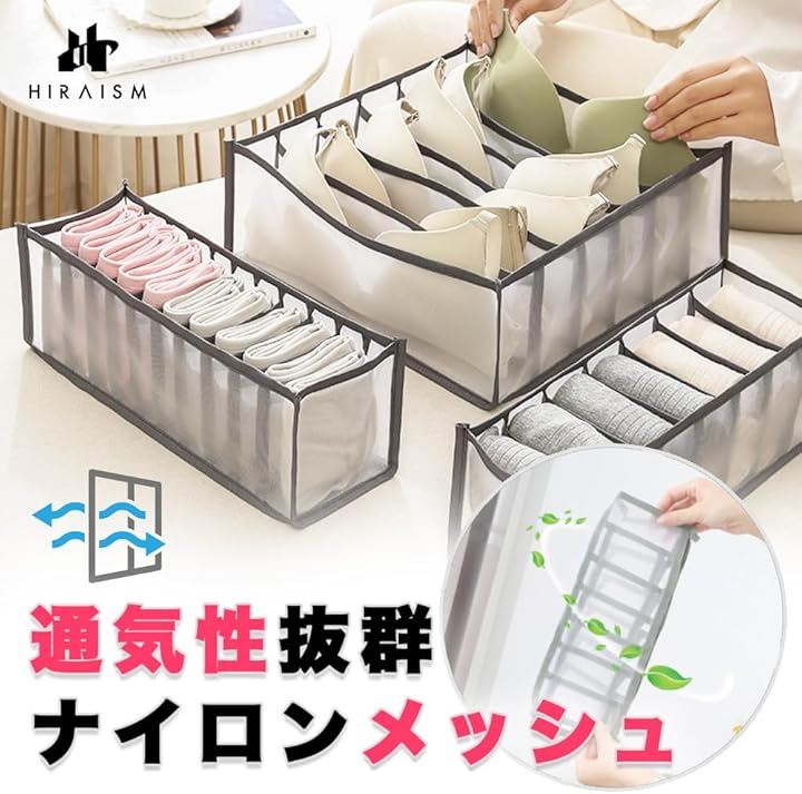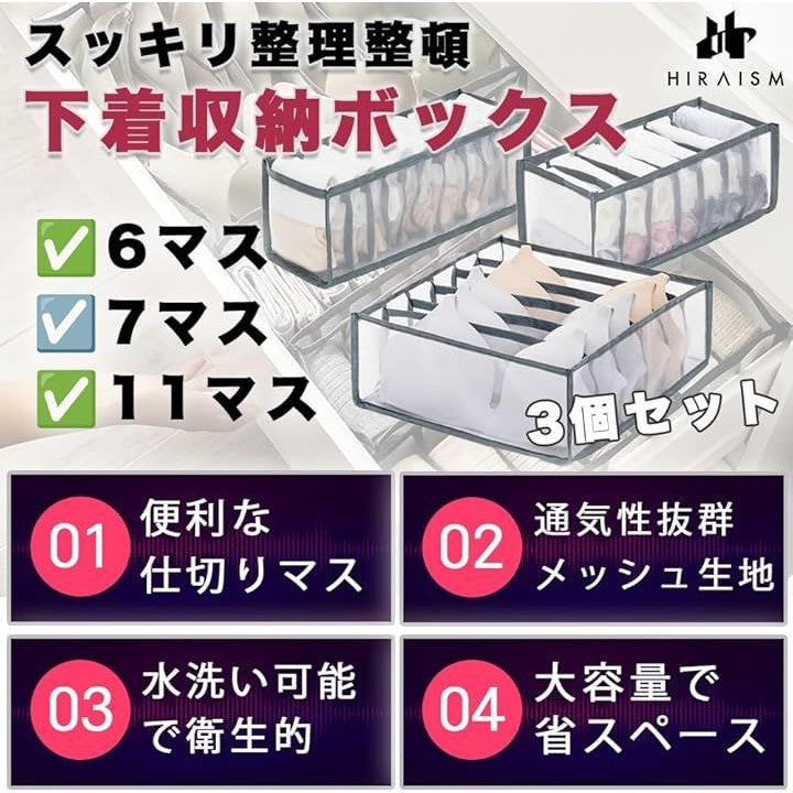 下着収納ボックス ブラジャー パンツ 靴下 引き出し 仕切り メッシュ 6マス 7マス 11マス 3点セット