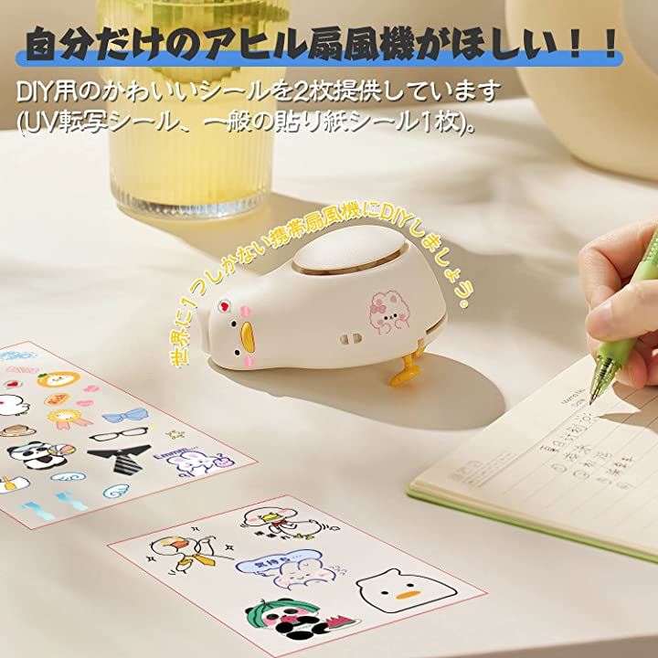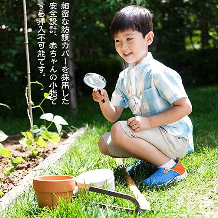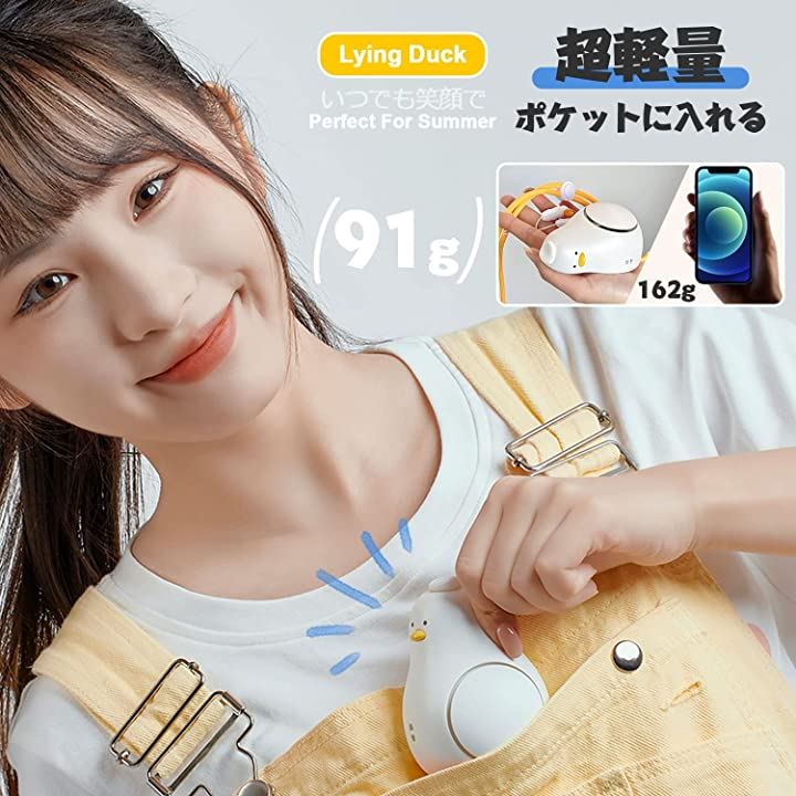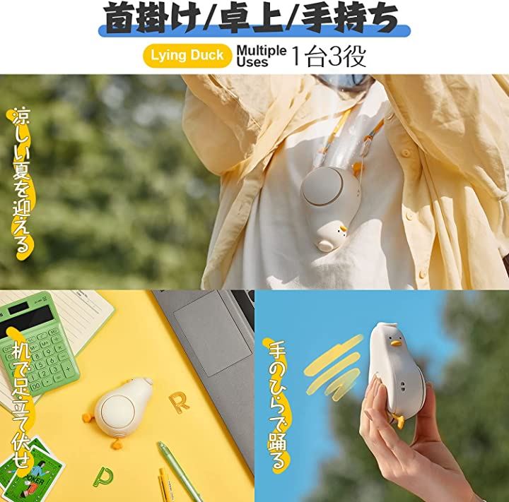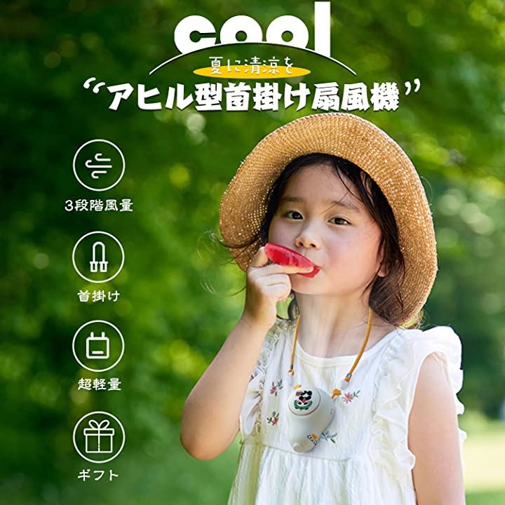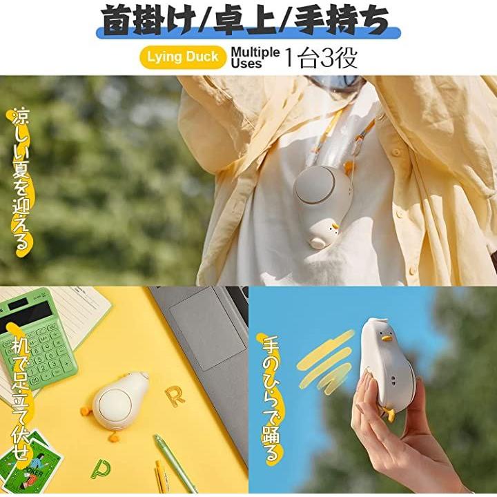携帯扇風機 首掛け扇風機 可愛い 充電式 軽量 静音 3段階風量調節 日本語説明書付き シール付き
