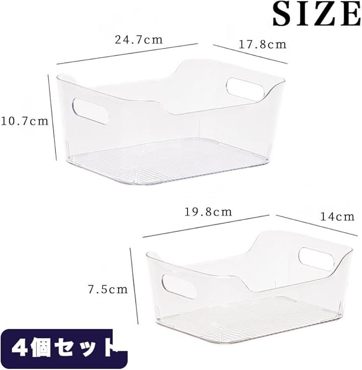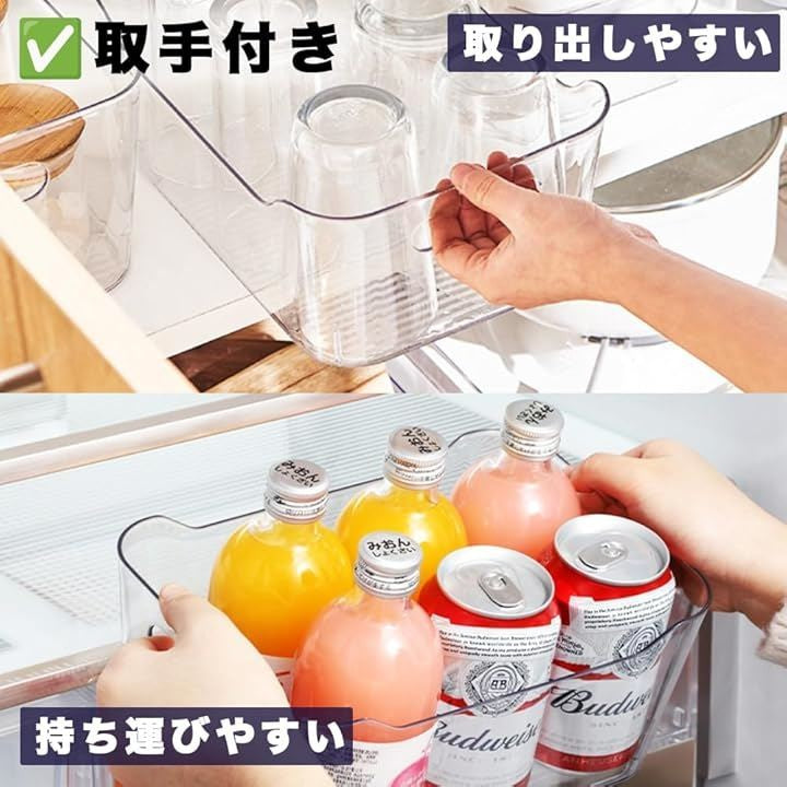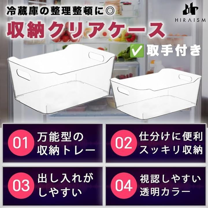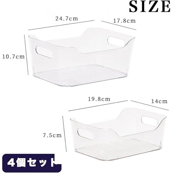 冷蔵庫 収納ケース クリア 取っ手付き プラスチック 4個セット 大2個 小2個
