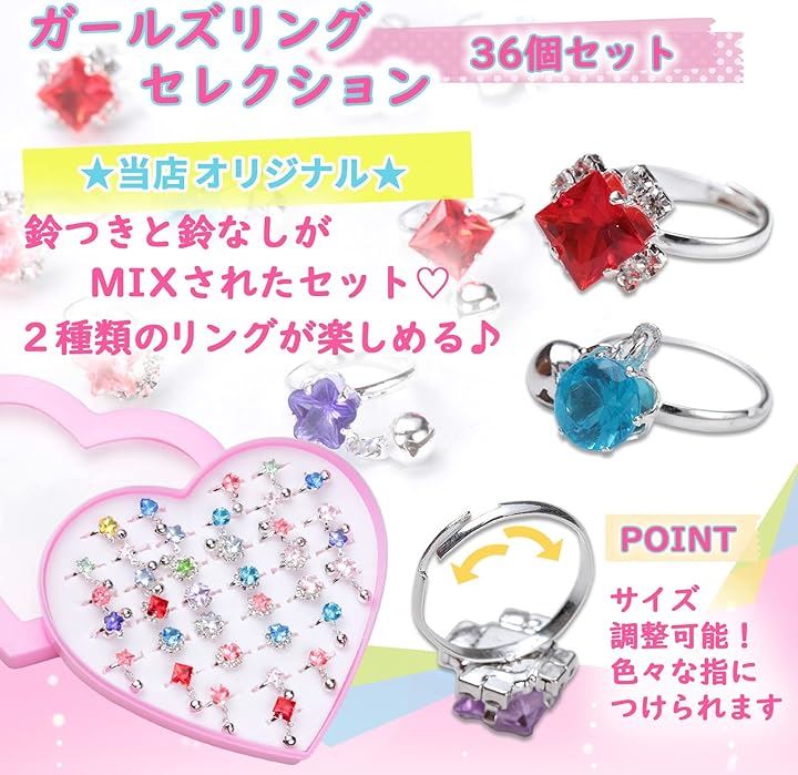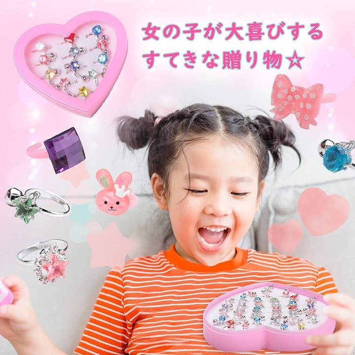 指輪セット キッズリング 女の子 おもちゃ お片付け収納ケース付き 36個セット