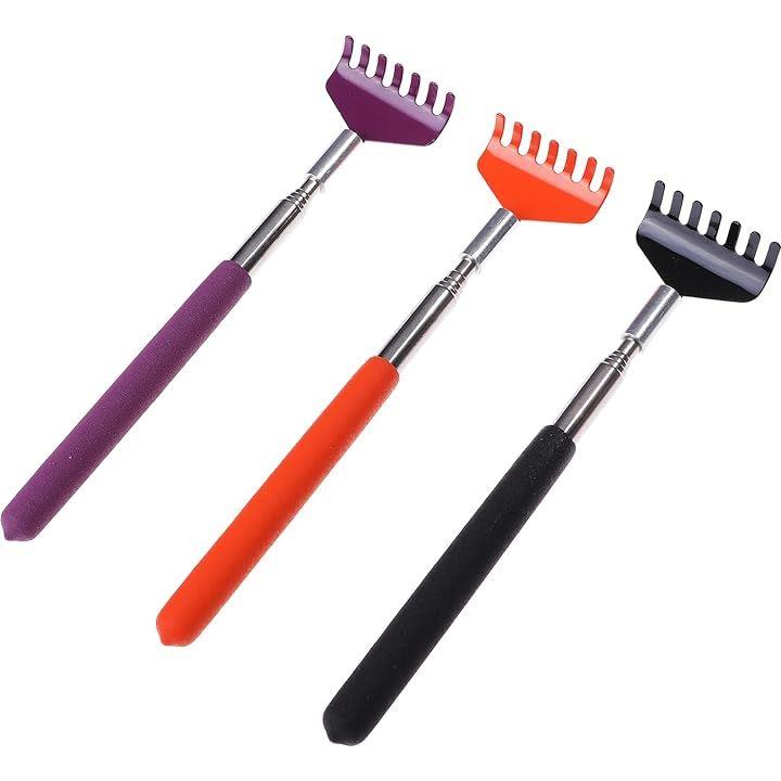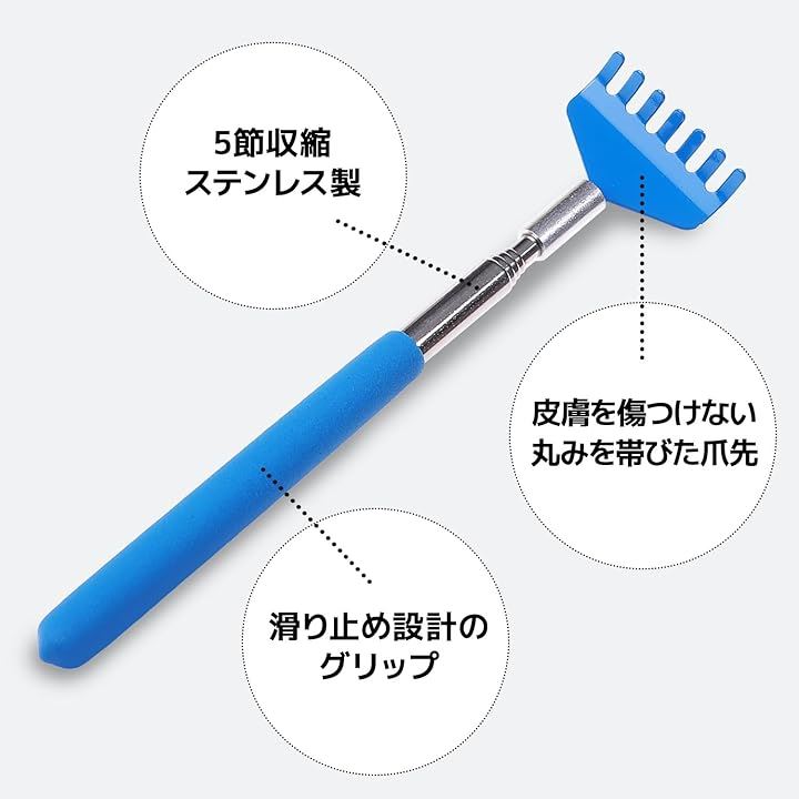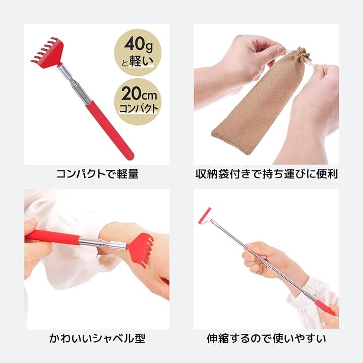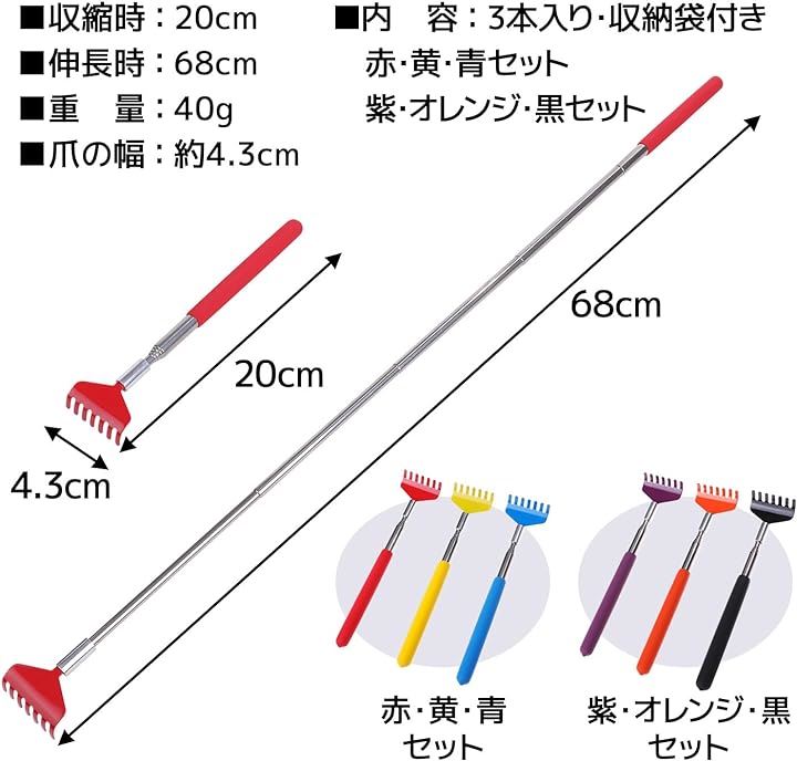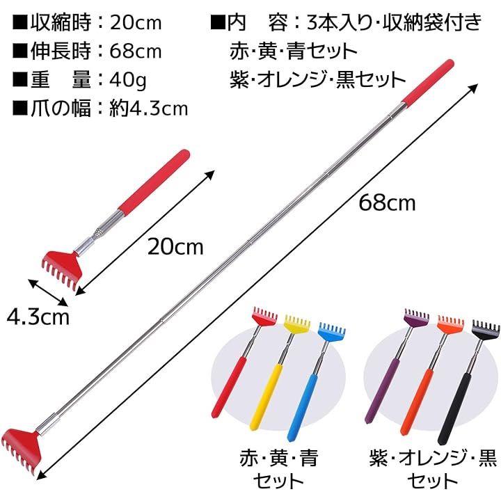 孫の手 伸縮 3本セット 20-68cm 携帯 背中がかゆい 背中掻き 隙間 物を取る ステンレス製 収納袋付き シャベル型