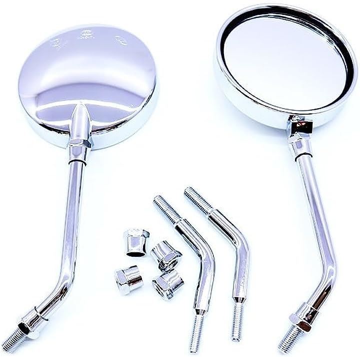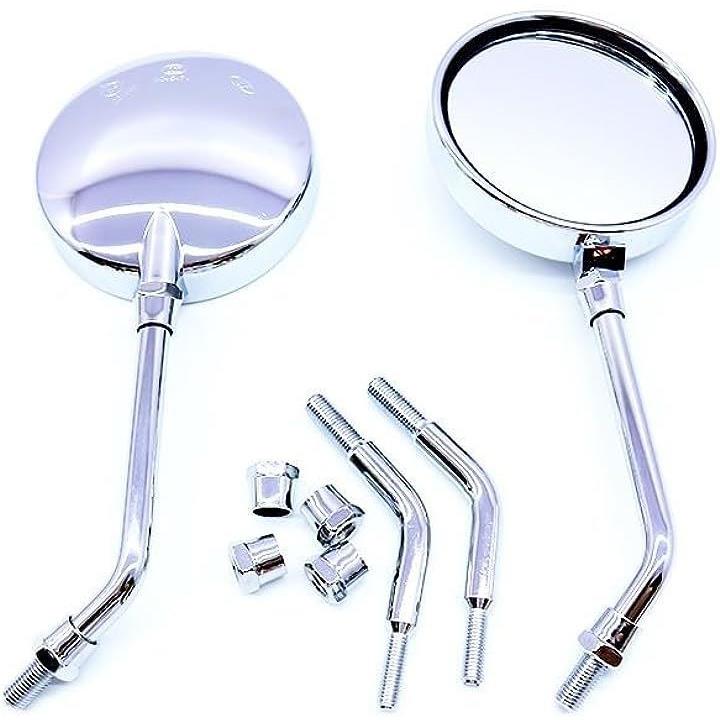 互換品バイク 丸型 ラウンドミラー 直径11cm ワイドタイプ ショート/ロング ステー 付属 10mm
