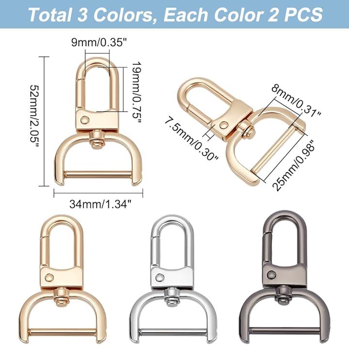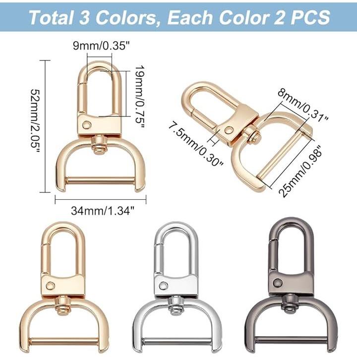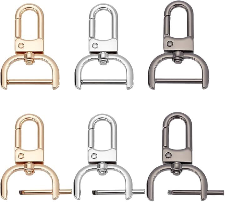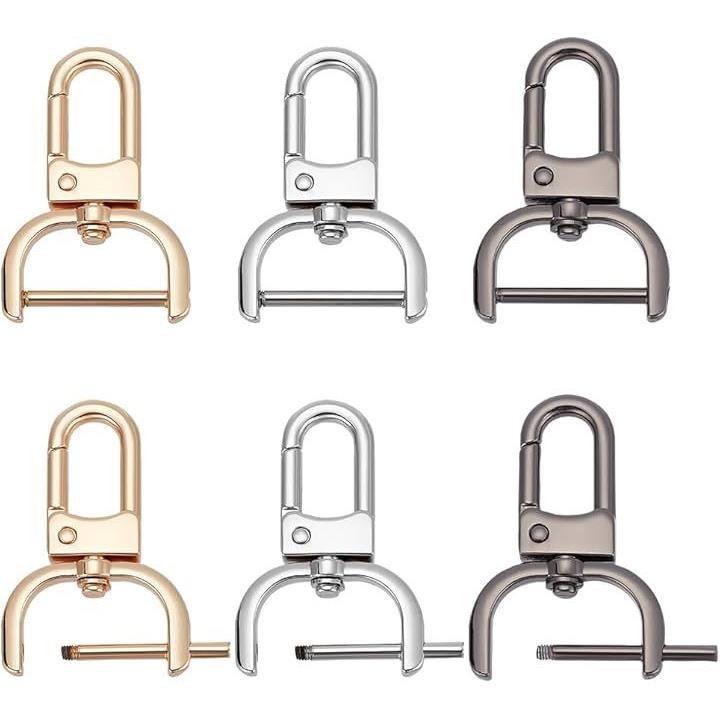 ナスカン Dカン ネジ式 360度回転 合金製 6個セット キーホルダー金具 取付分解簡単な 高質 光沢感 アクセサリーパーツ 車 自転車 家の鍵