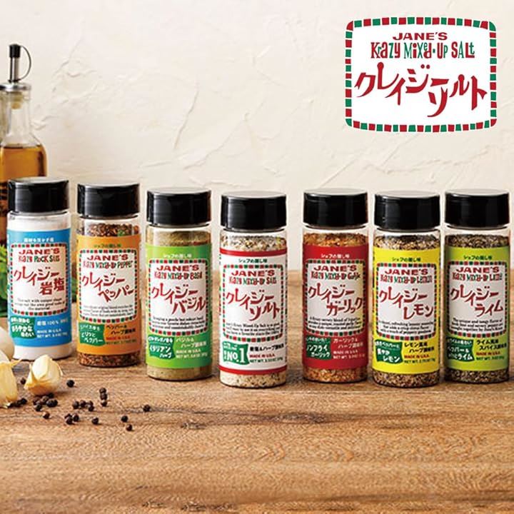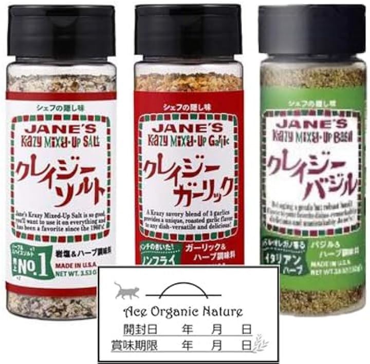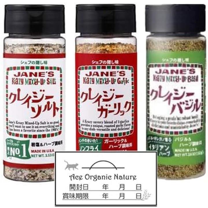 クレイジーソルト 3種セット 100g、クレイジーガーリック 111g、クレイジーバジル 102g特製開封日シール付き