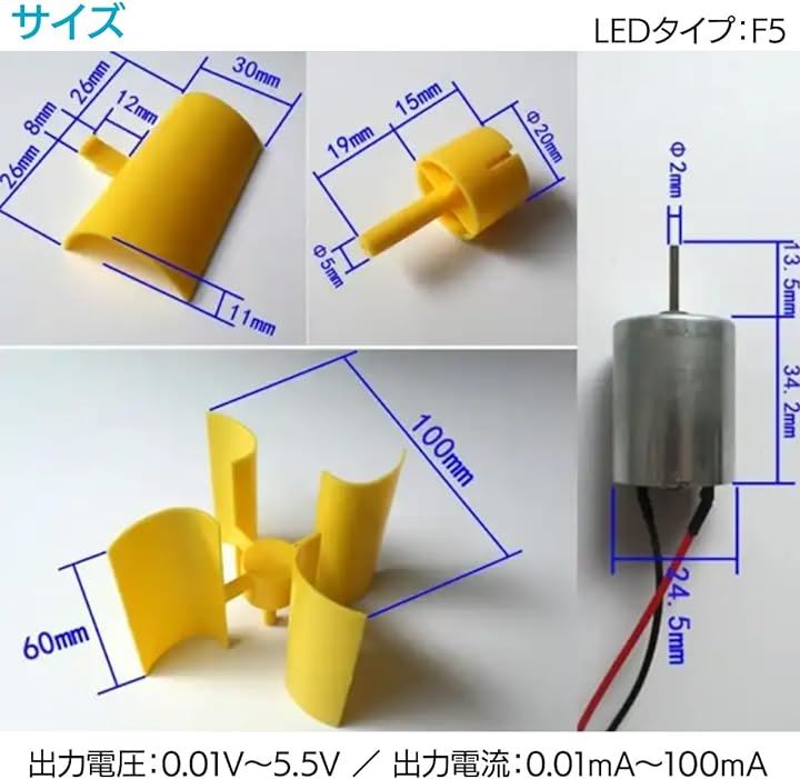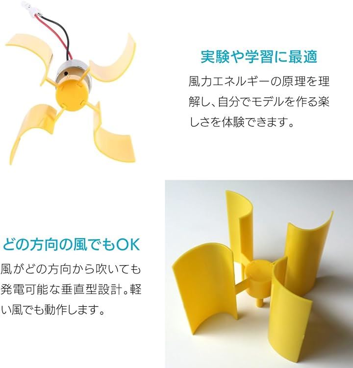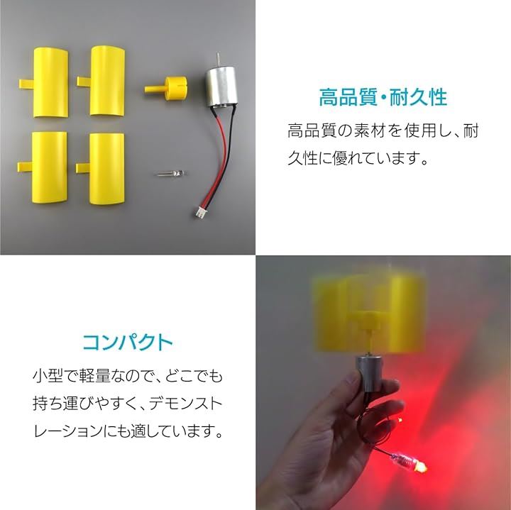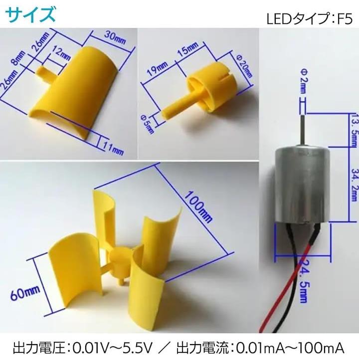垂直風力発電機 DIYキット 学習・実験用 マイクロモーターブレード 小型モーター 風力エネルギー科学モデル 手作り風力モーター RED LED