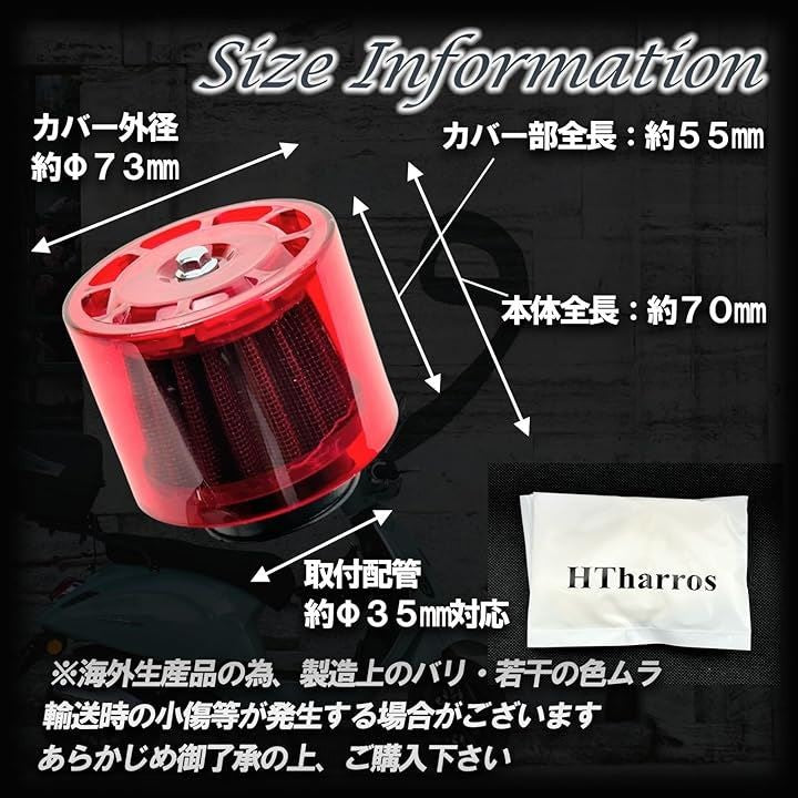 エアクリーナー 35φ カバー付き 全天候型 バイク用 汎用 ヤマハ スズキ カワサキ ホンダ 対応
