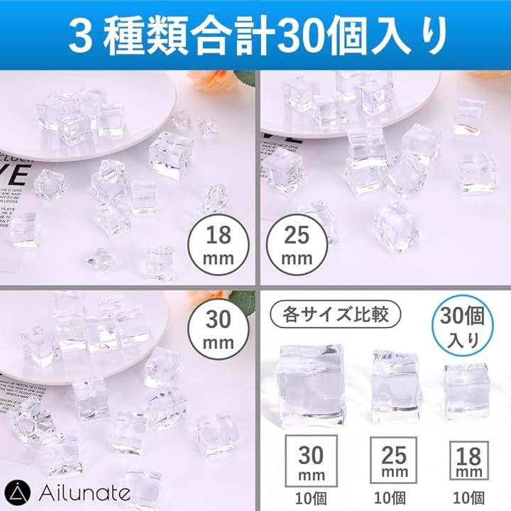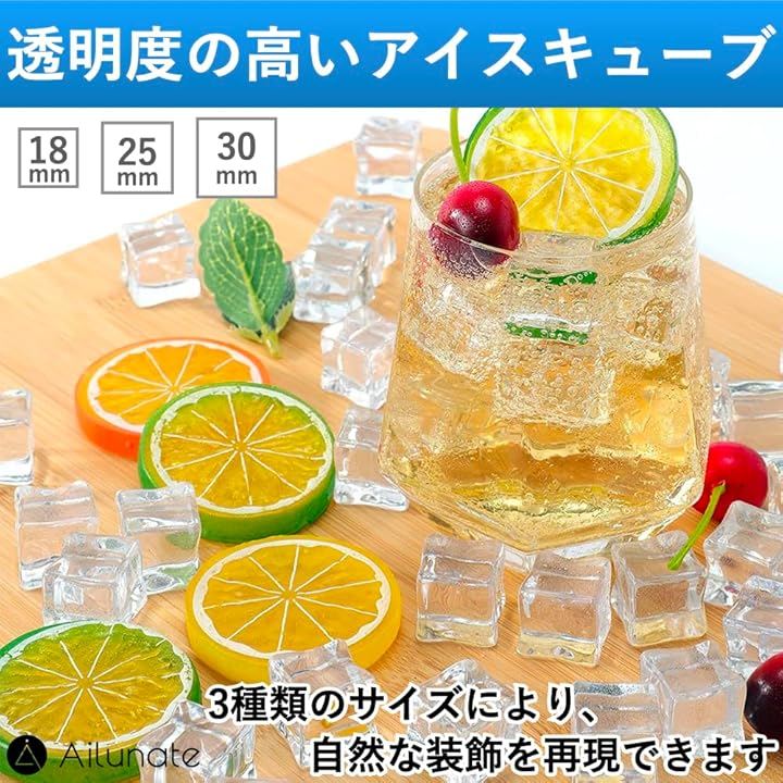 氷 アイスキューブ フェイク サンプル アクリルキューブ クリスタル 角氷 食品 撮影 小道具 ディスプレイ 30個 18mm 25mm 30mm