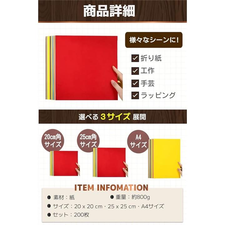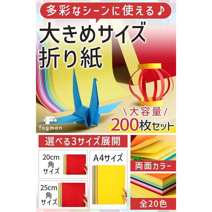 折り紙 大きいサイズ 両面同色 手芸 大容量 20色 200枚セット x