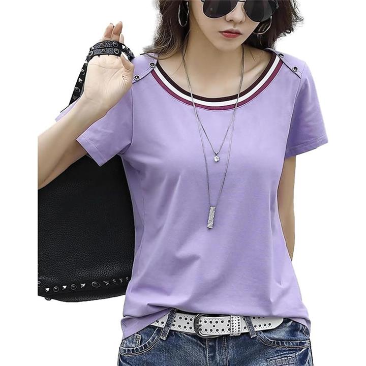 [blue beryl] Tシャツ レディース 半袖 カットソー ラウンドネック トリコロール 配色ライン BB008 |