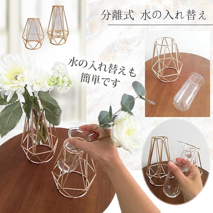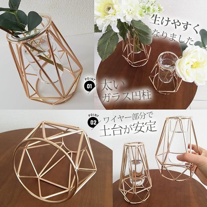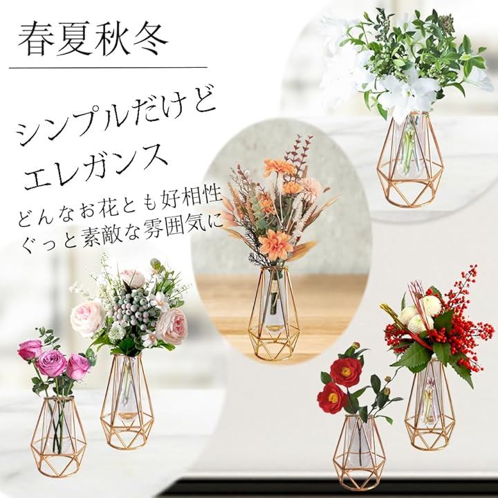 花瓶 おしゃれ ゴールド ガラス 一輪挿し 北欧 フラワーベース 試験管花瓶 御洒落 生け花 造花 インテリア ガラスベース