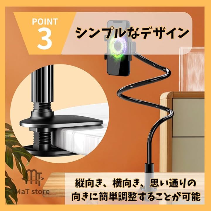 スマホスタンド アーム 寝ながら ベッド 撮影 携帯 ホルダー 固定