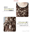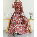 ニューネ 総柄 マキシ丈 ワンピース ロング フレア ウエストゴム ゆったり 花柄 柄ロングワンピ ロングチュニック レトロ ナチュラル