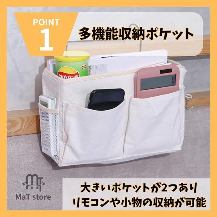ベッドサイド 収納 吊り下げ ポケット ハンギング フック リモコン スマホ 小物入れ