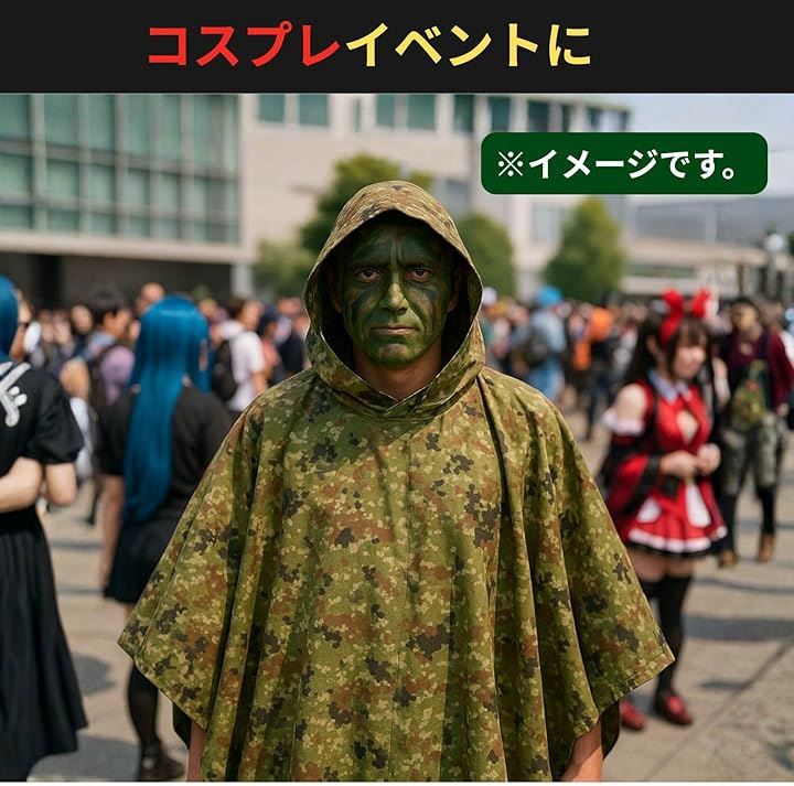 陸上 自衛隊 迷彩 ポンチョ PX品 タイプ メンズ レイン コート ウェア 平成 装備 自転車 カッパ 雨衣 雨具 収納袋