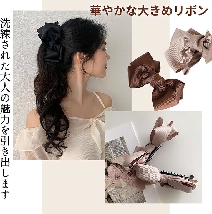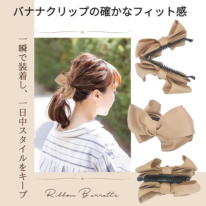 大人可愛い。 リボン バレッタ ふんわり バナナクリップ ヘアアクセサリー ヘアクリップ オリジナルパッケージ