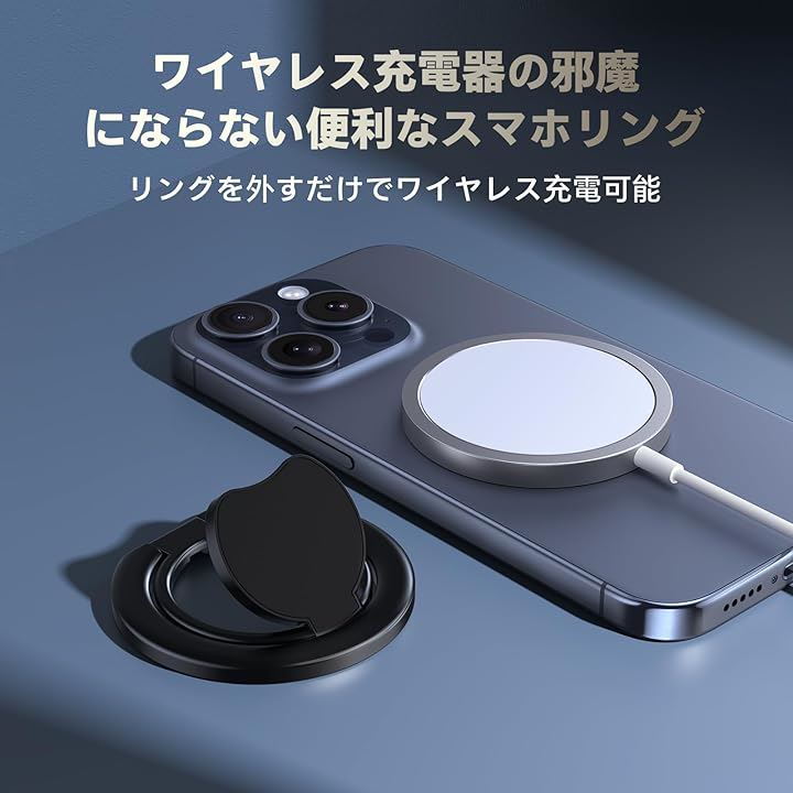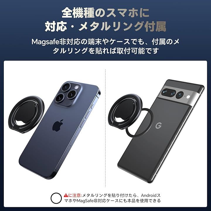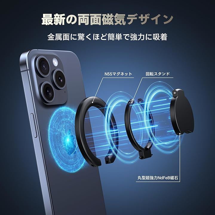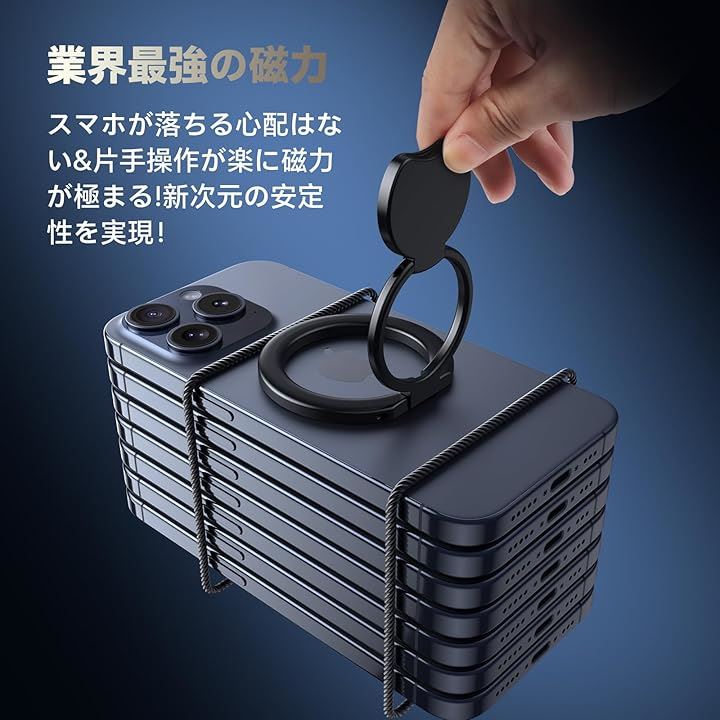 マグネットの王 スマホリング MagSafe対応 スマホスタンド 超強両面マグネット バンカーリング 横縦両立 スマホ落下防止/角度調整可能 磁気増強メタルリング付き iPhone