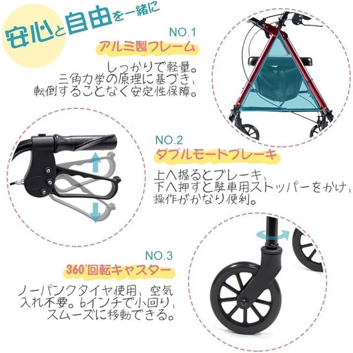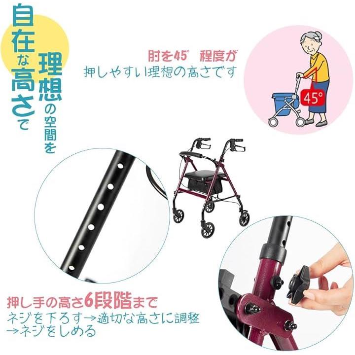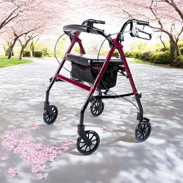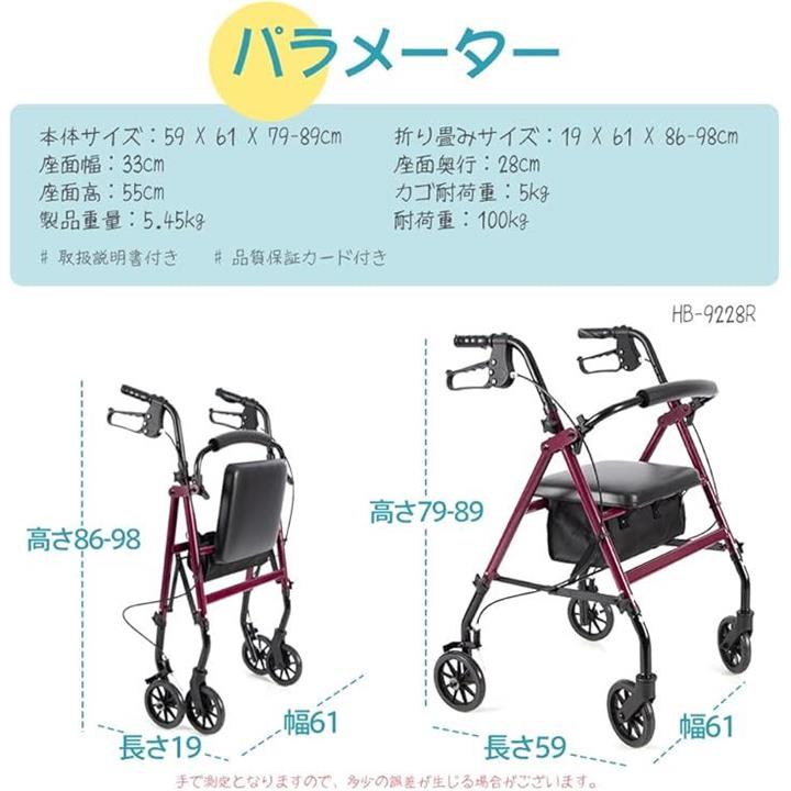 歩行器 高齢者用 室内 屋外 折りたたみ 軽量 四輪 歩行車 普通サイズ 座れる シルバーカー 買い物カゴ付き ブレーキ付き 歩行補助 手押し車 高さ調節 簡単組立 HB-9228R