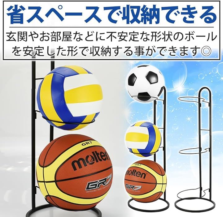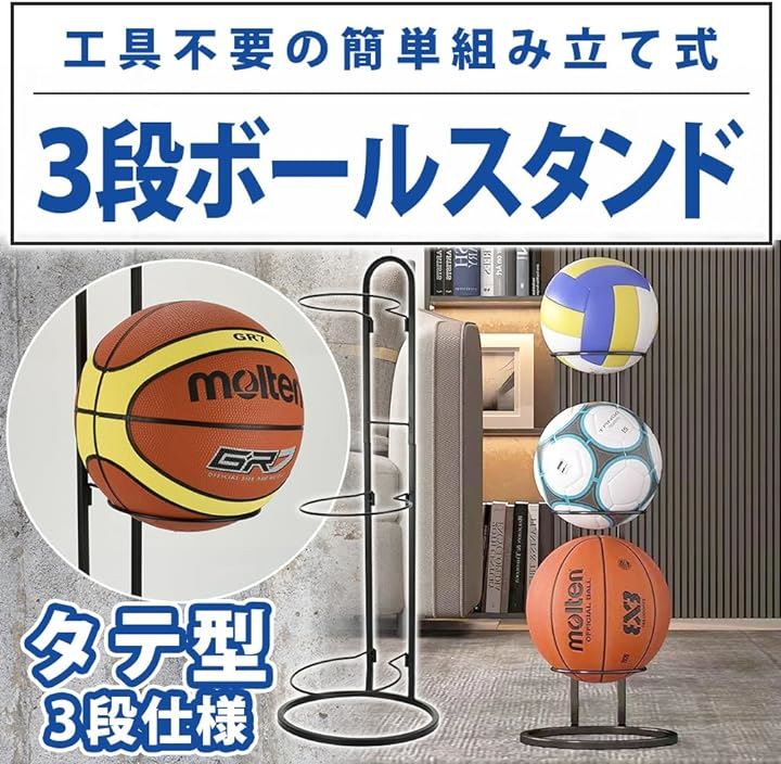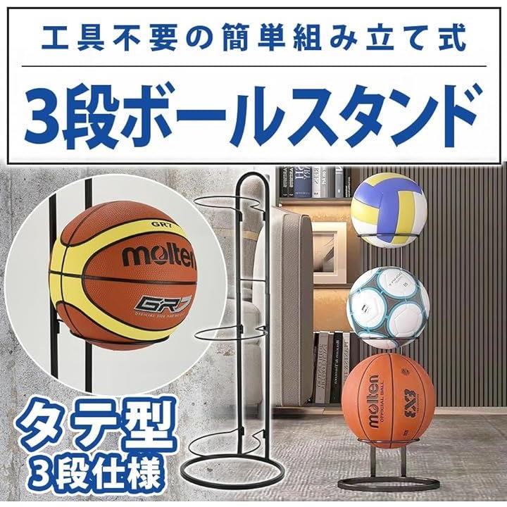 ボールホルダー 収納スタンド 縦3段 ネジなし 頑丈 置くだけ 倒れにくい 省スペース 球技