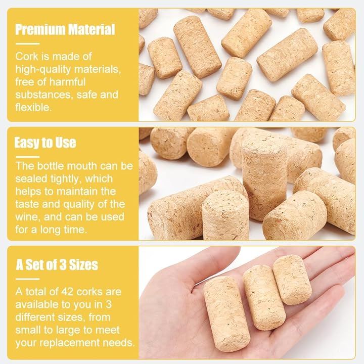42個 3スタイル 天然ストレートコルク ワイン栓 木製ビール瓶栓 オーナメント製作 アート クラフトプロジェクト用
