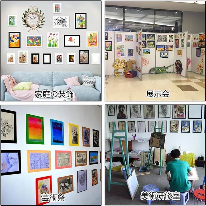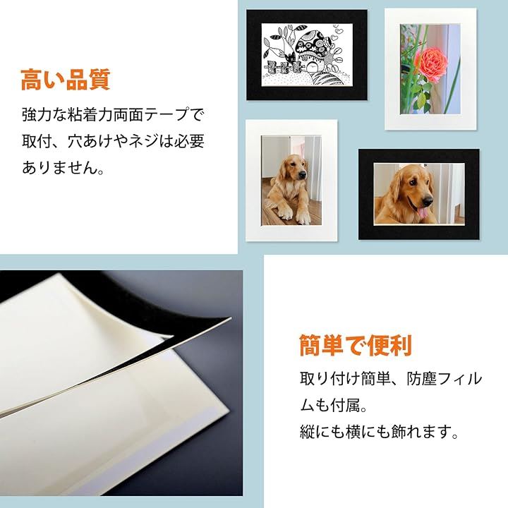 展示用 フォトフレーム 厚紙製 額縁 壁掛け 超軽量 アートフレーム インテリア シンプル 写真飾り おしゃれ 透明保護フィルム 壁掛け用粘着シート付き
