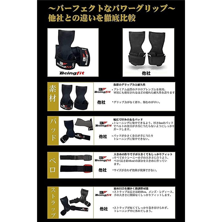 Beingfit パワーグリップ プロ 筋トレ デッドリフト 懸垂 グローブ プレミアムクオリティ 筋トレグッズ |