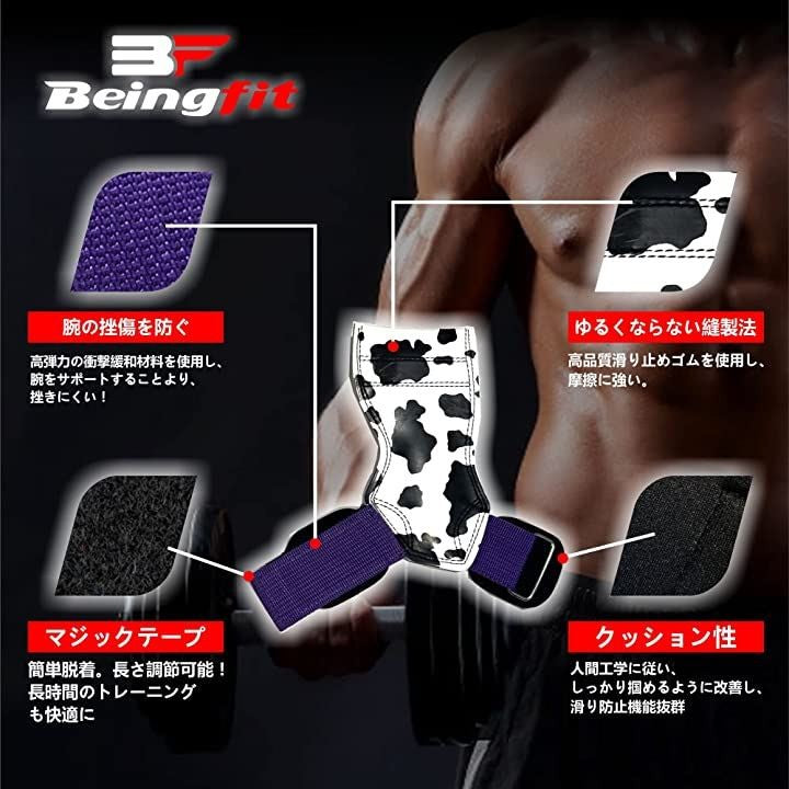・「現役フィジカー監修」Beingfit's 社の製品は、15年以上のトレーニング経験を持つ現役フィジカー監修のもと、様々なブランドの筋トレグッズをテストし問題点を、2年間の歳月をかけ改善を繰り返し生み出された、筋トレのパワーグリップです。
