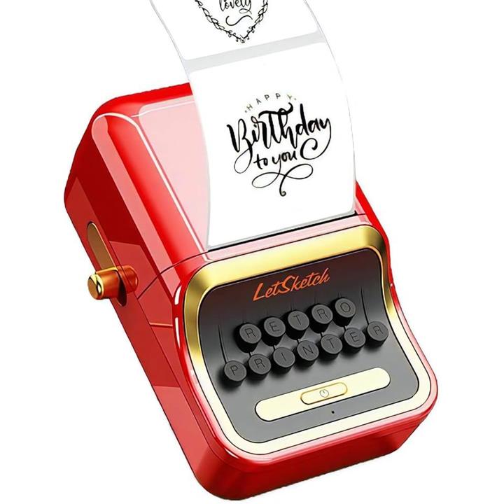 「互換品」LetSketch 200dpi レトロ 文具 ミニプリンター スマホ シール モバイル サーマル プリンター 感熱 bluetooth スマホ対応 軽量 静音 電池内蔵 レッド200dpi |