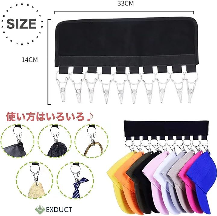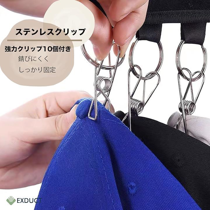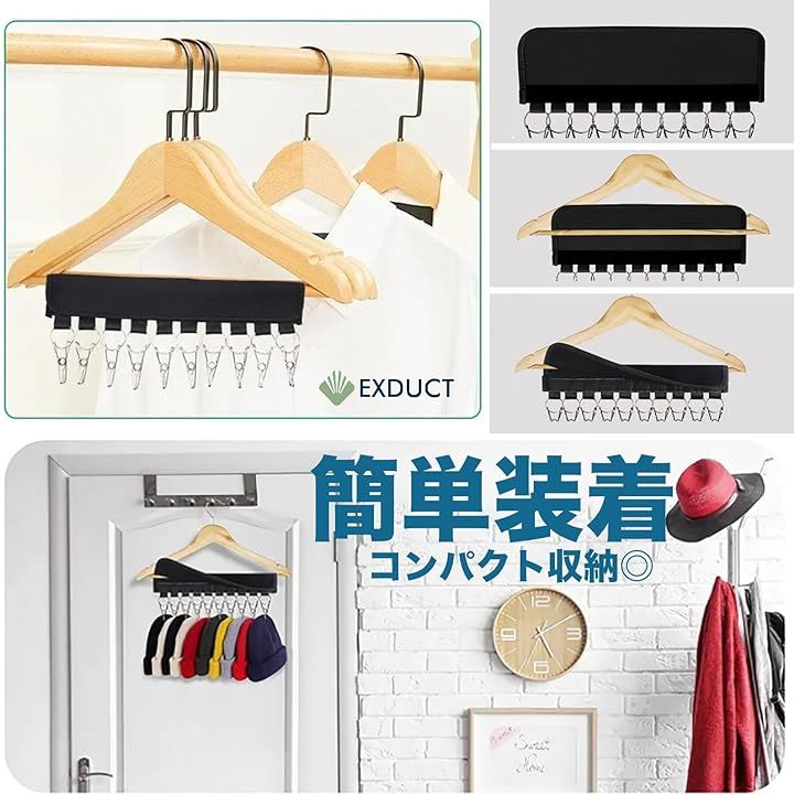 帽子収納 帽子掛けハンガー キャップ ピンチハンガー 10ピンチ 折り畳み 省スペース 旅行用 家庭用