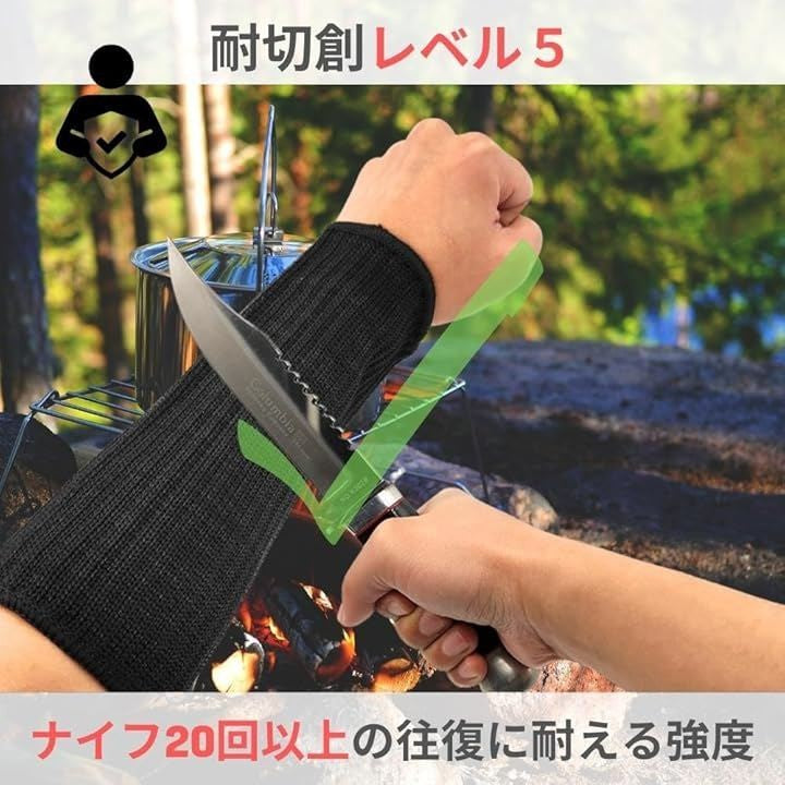 防刃 アームカバー 作業用 草刈り 手袋 腕カバー 耐切創レベル5 フリーサイズ 無地
