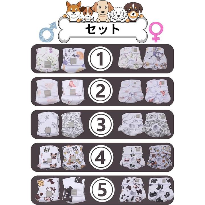 おむつカバー マナーパンツ サニタリーウェア 2点セット 犬用おむつ 介護 トイレトレーニング お出かけ おもらし 粗相に おむつカバー (パンツセット5, M) |