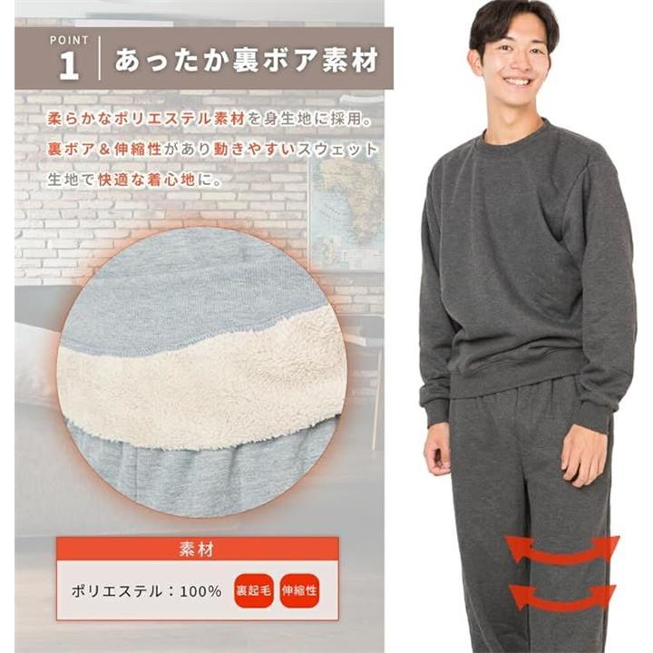 [Y's factory] 裏ボア スウェット セットアップ 上下セット メンズ ルームウェア パジャマ 部屋着 長袖 長ズボン 大きいサイズ ゆったり あったか 動きやすい 着心地 秋 冬 吸汗速乾 伸縮性 (チャコールグレー Mサイズ) |