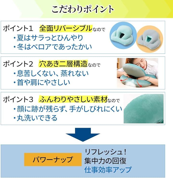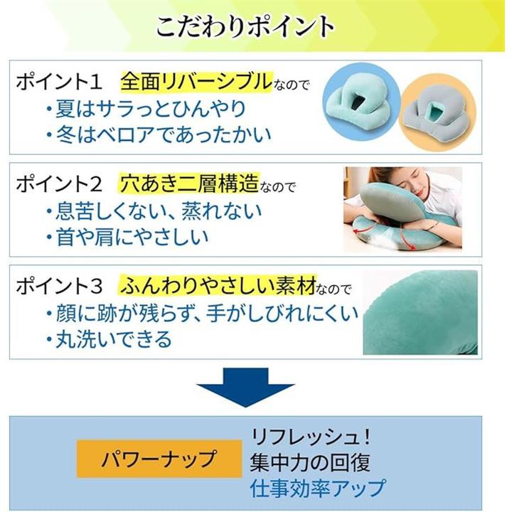 うつ伏せ寝枕 お昼寝枕 全面リバーシブル 仮眠 クッション 穴あき