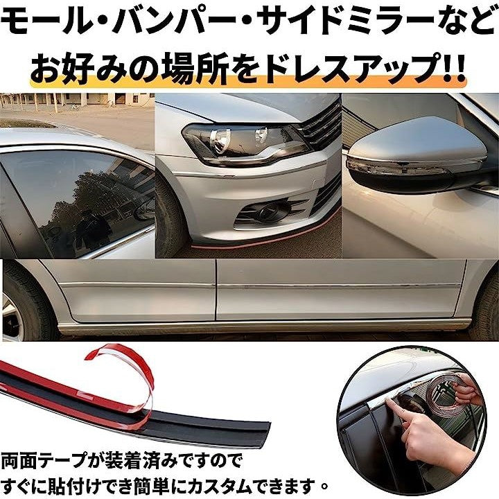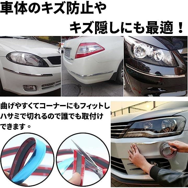 メッキ モール シルバー テープ ボディ バンパー 汎用 プロテクター 保護 ドレスアップ PVC メタリック