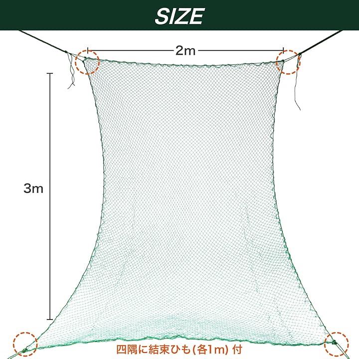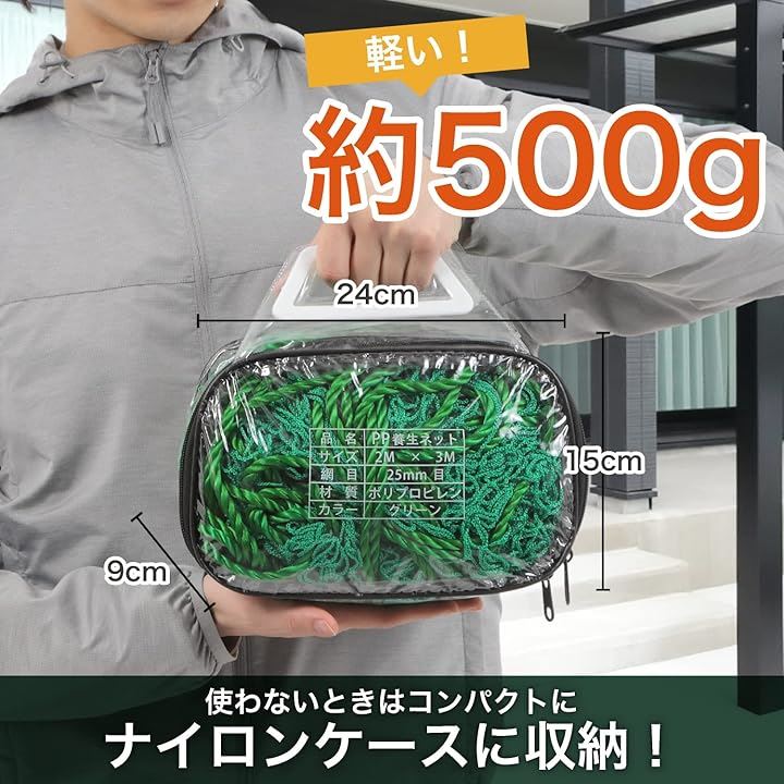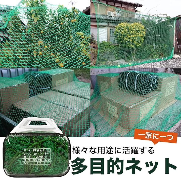 多目的養生グリーンネット 鳥よけ サッカー・野球ネット 網目25x25mm 四隅結束紐 ケース付