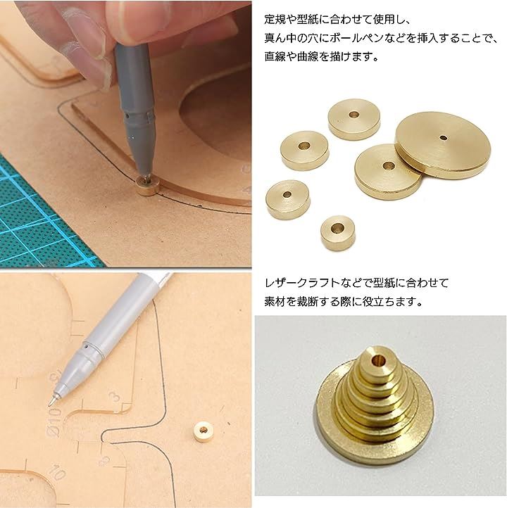 丸ヘリ定規 レザークラフト 工具 マーキング 丸型 真鍮 型紙 レザークラフトキット 革細工 布 YM-300-MJ