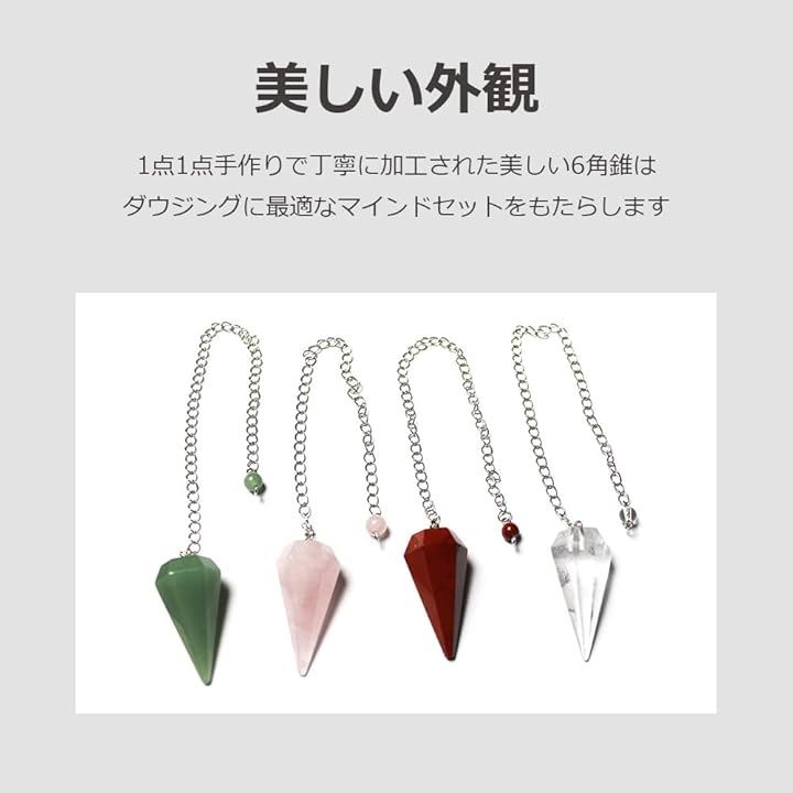 天然石 ペンデュラム パワーストーン ダウジング 占い 振り子 チェーン付き 六角錐
