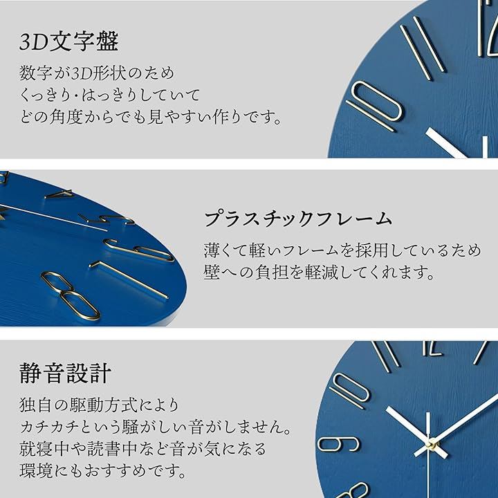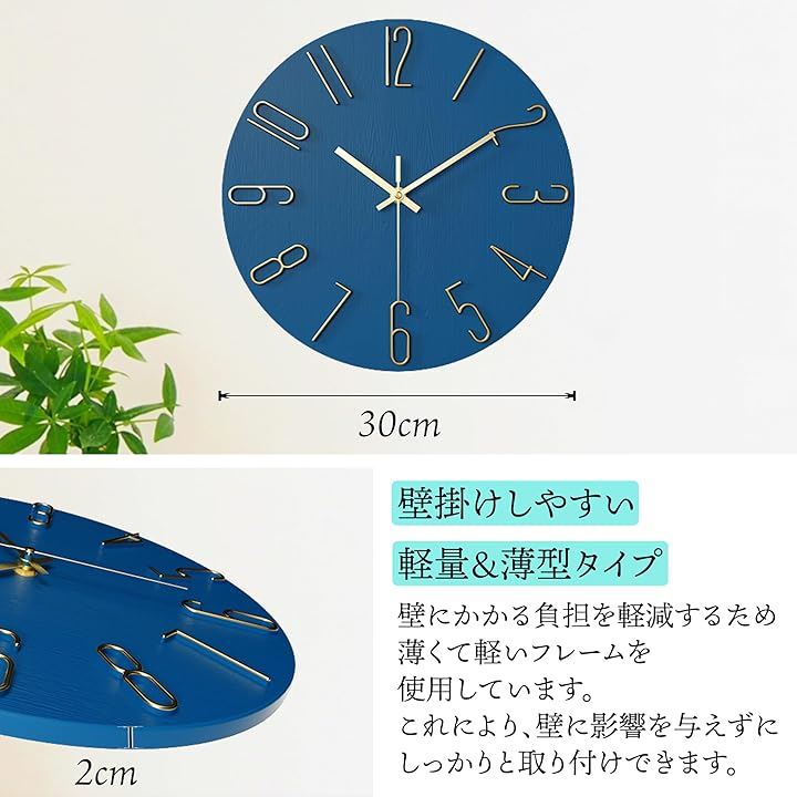 壁掛け 時計 シンプル 北欧風 インテリア アナログ ウォール時計 静音 リビング オフィス 寝室