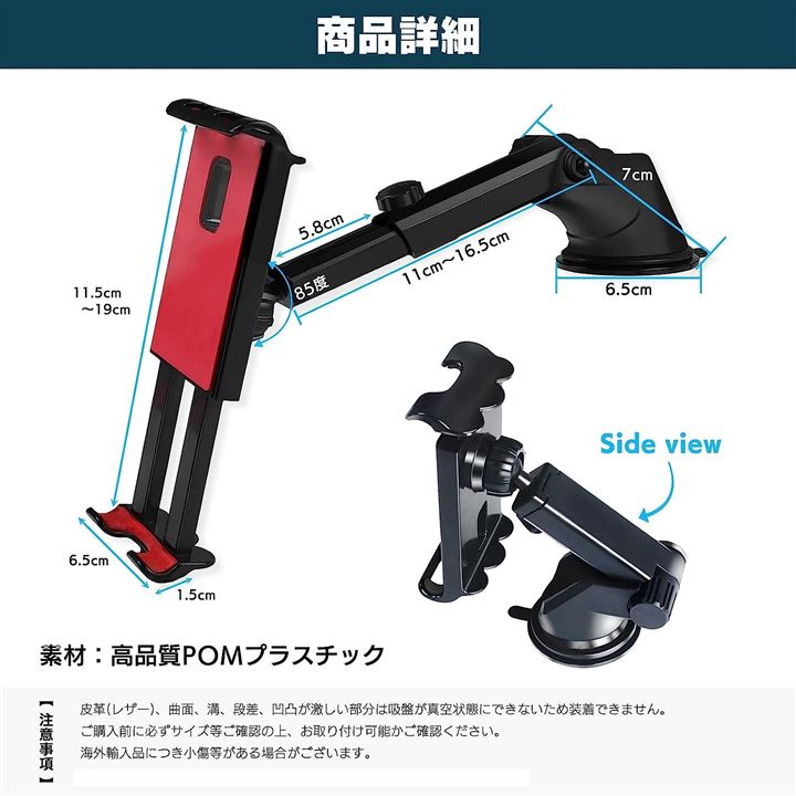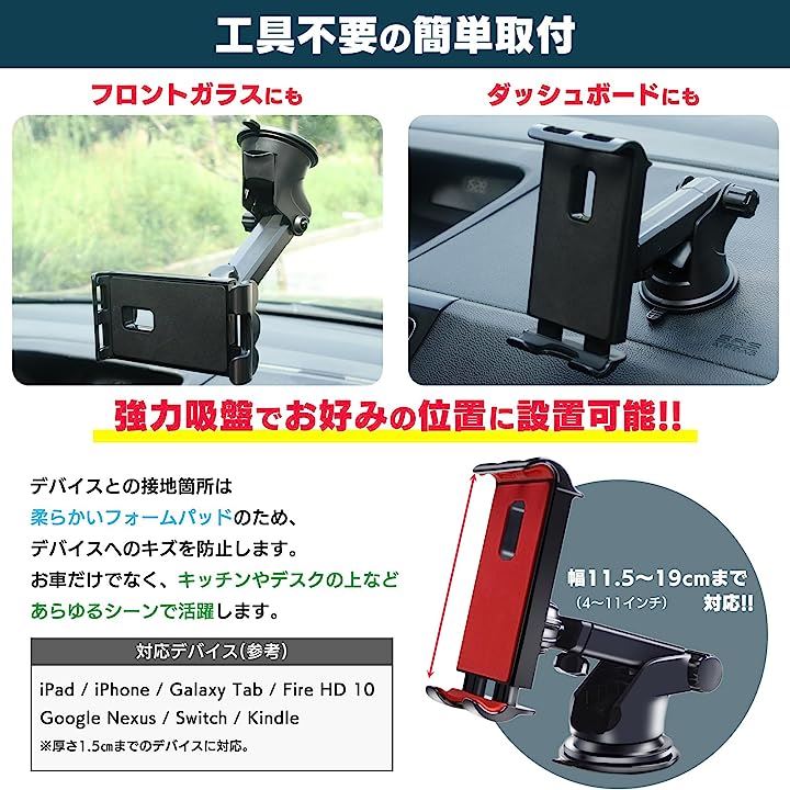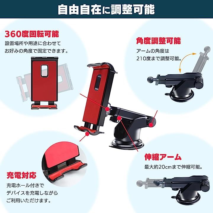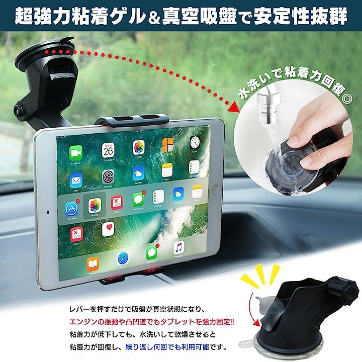 タブレットホルダー 車載 超強力 粘着ゲル 真空吸盤 ダッシュボード フロントガラス スマホ カーナビ