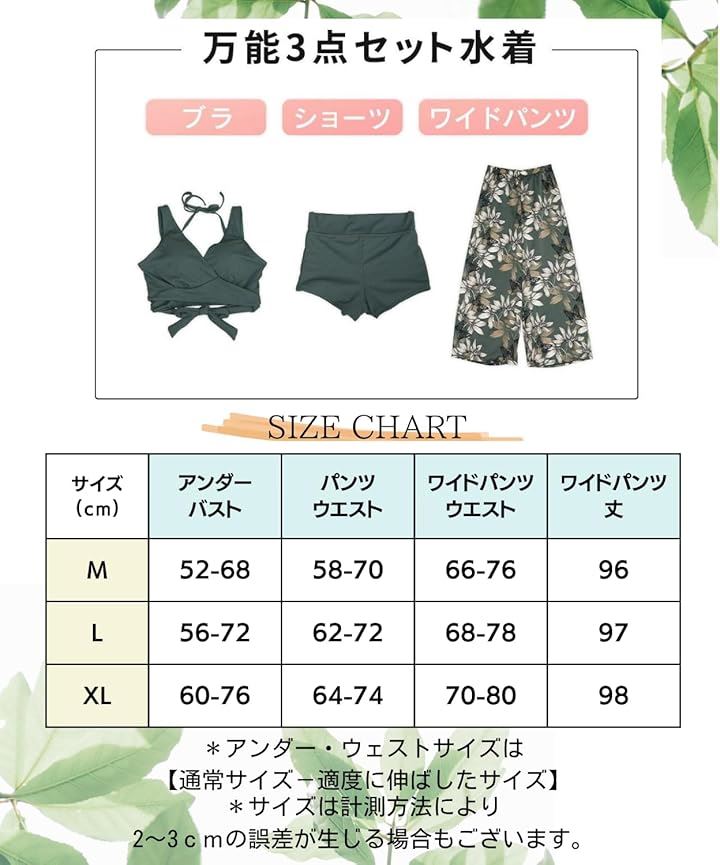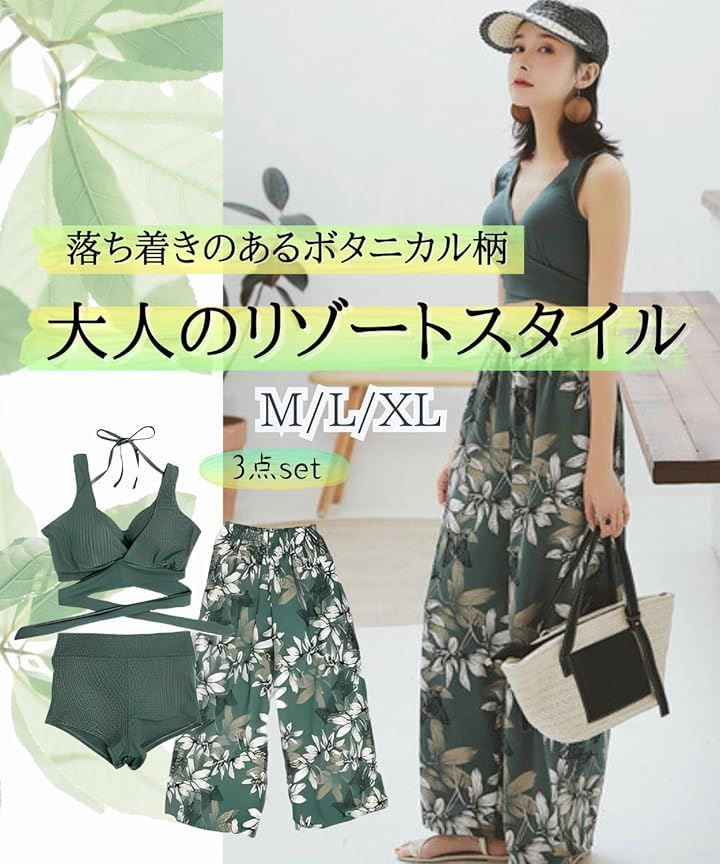 水着 レディース 体型カバー 露出少なめ ビキニ かわいい タンキニ ロングパンツ セパレート