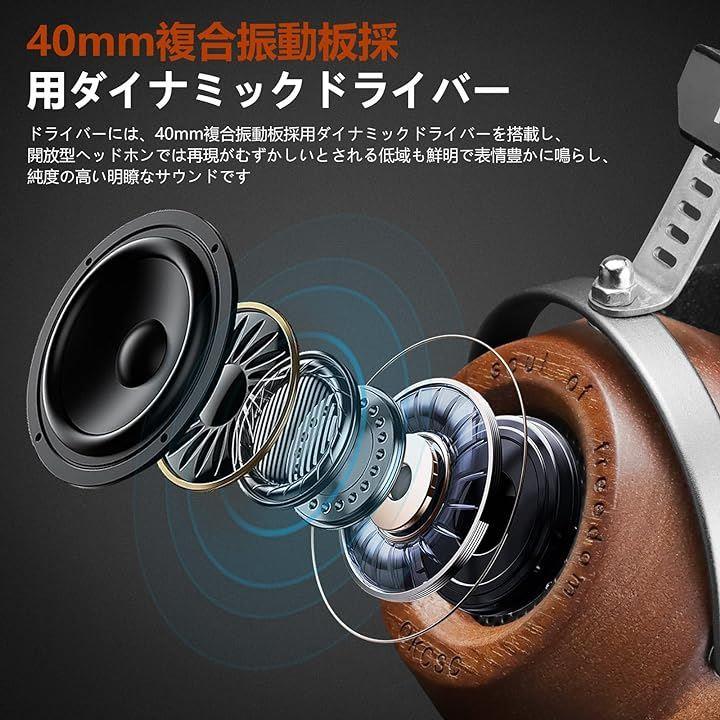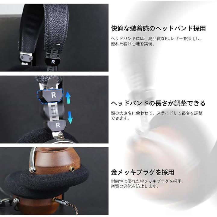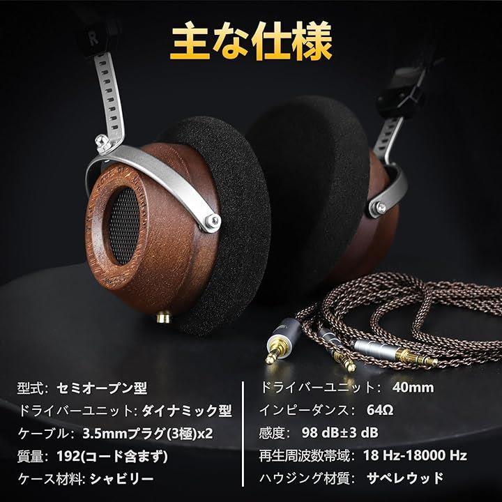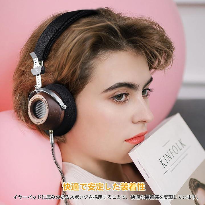 互換品 M1 Pro ヘッドホン 有線 セミオープン型 ウッドハウジング 40mmドライバーユニット ステレオ 3.5mm接続/6.35mm変換プラグ付属 PC/スマホ・ウォークマン対応