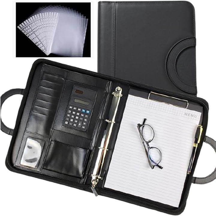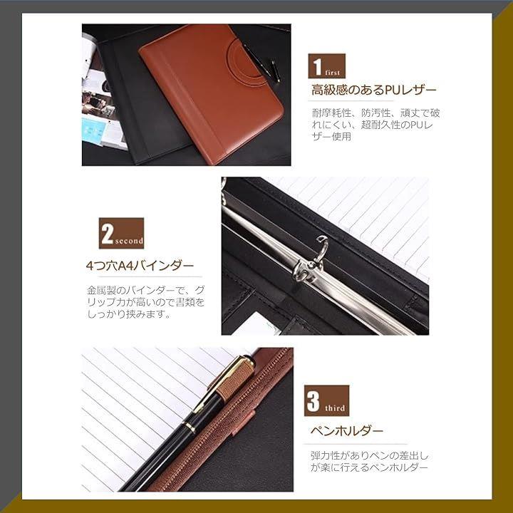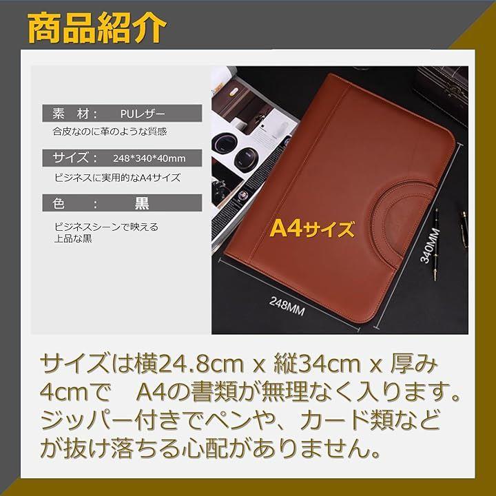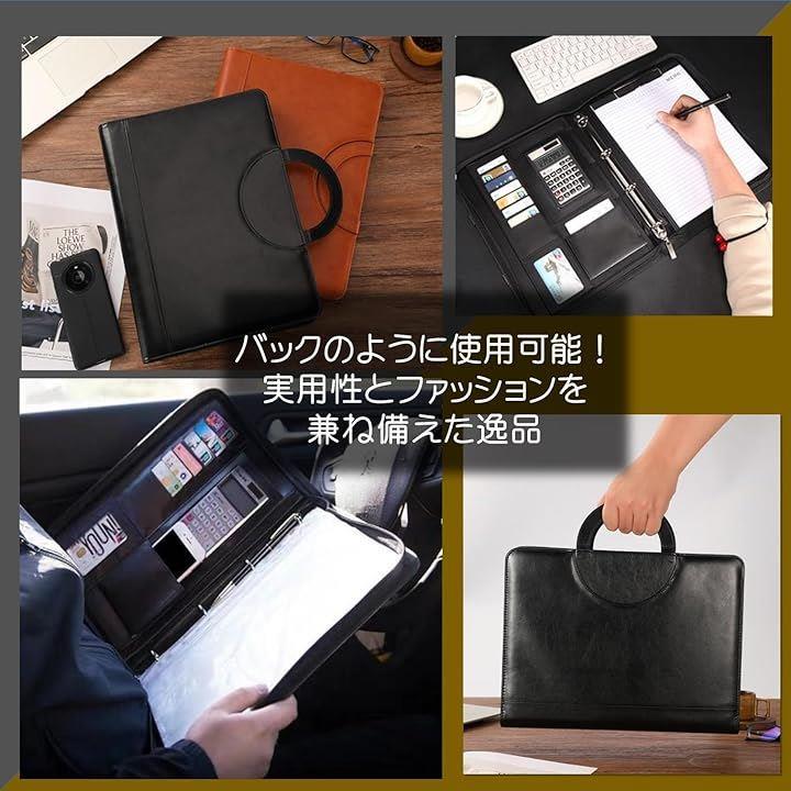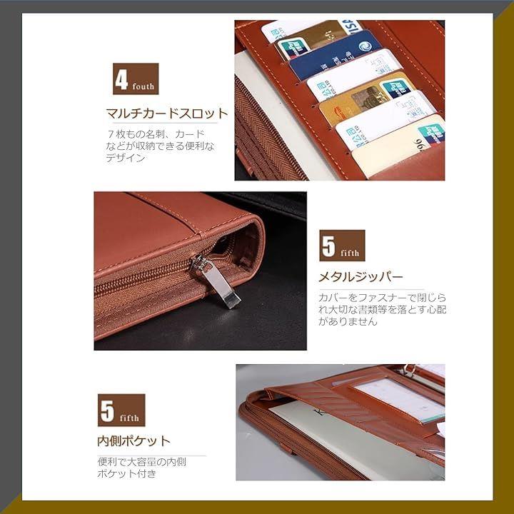多機能 バインダー A4 二つ折り ファスナー付き クリップボード クリップファイル PUレザー フォルダー ジッパー バッグ型 ポケット付き 名刺入れ