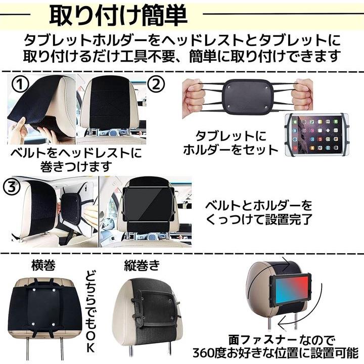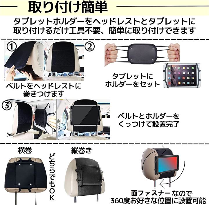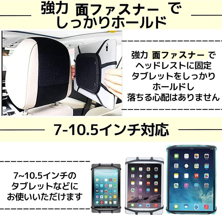 タブレットホルダー 車載ホルダー ヘッドレスト 後部座席 スマホ ゲーム 7-10.5インチ対応 簡単設置