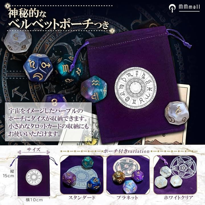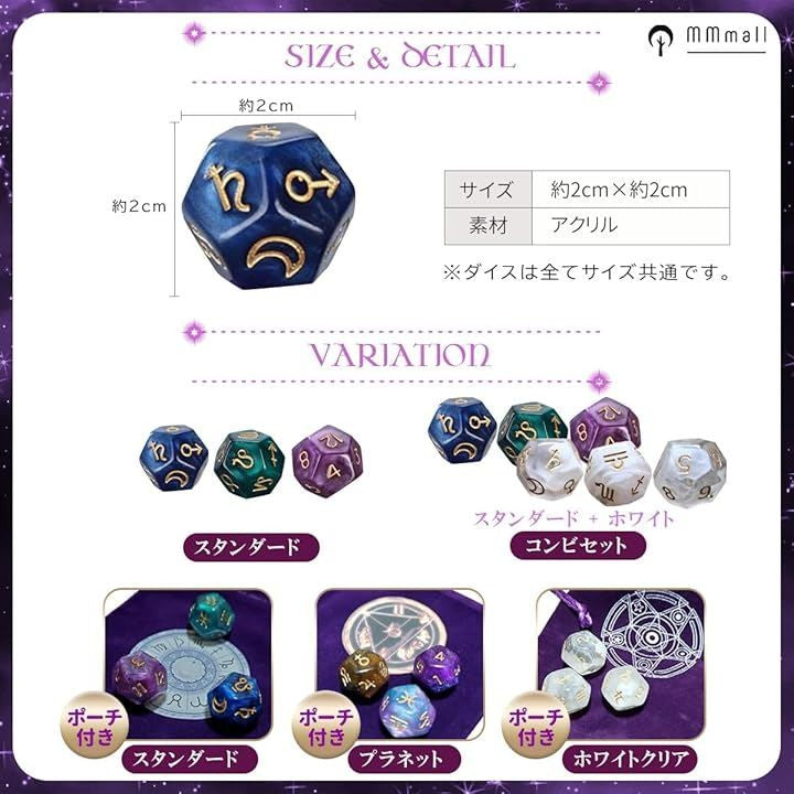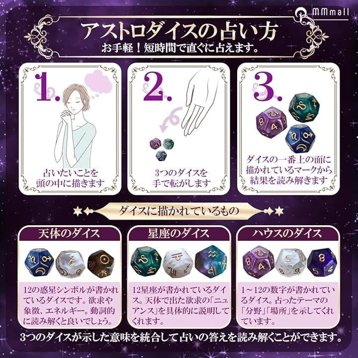 アストロダイス 3個セット 占い ゲーム 占星術 星座 アクリル 12面ダイス サイコロ